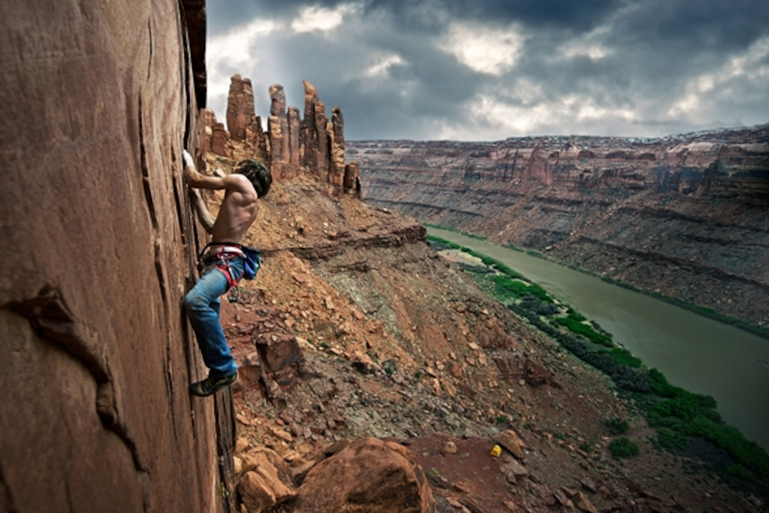 A: You had to paddle the 45-mile Labyrinth Canyon to locate the climbing routes you’d tackle. Was everyone in agreement on the routes, or was there debate? What were you looking for from a shooting perspective?