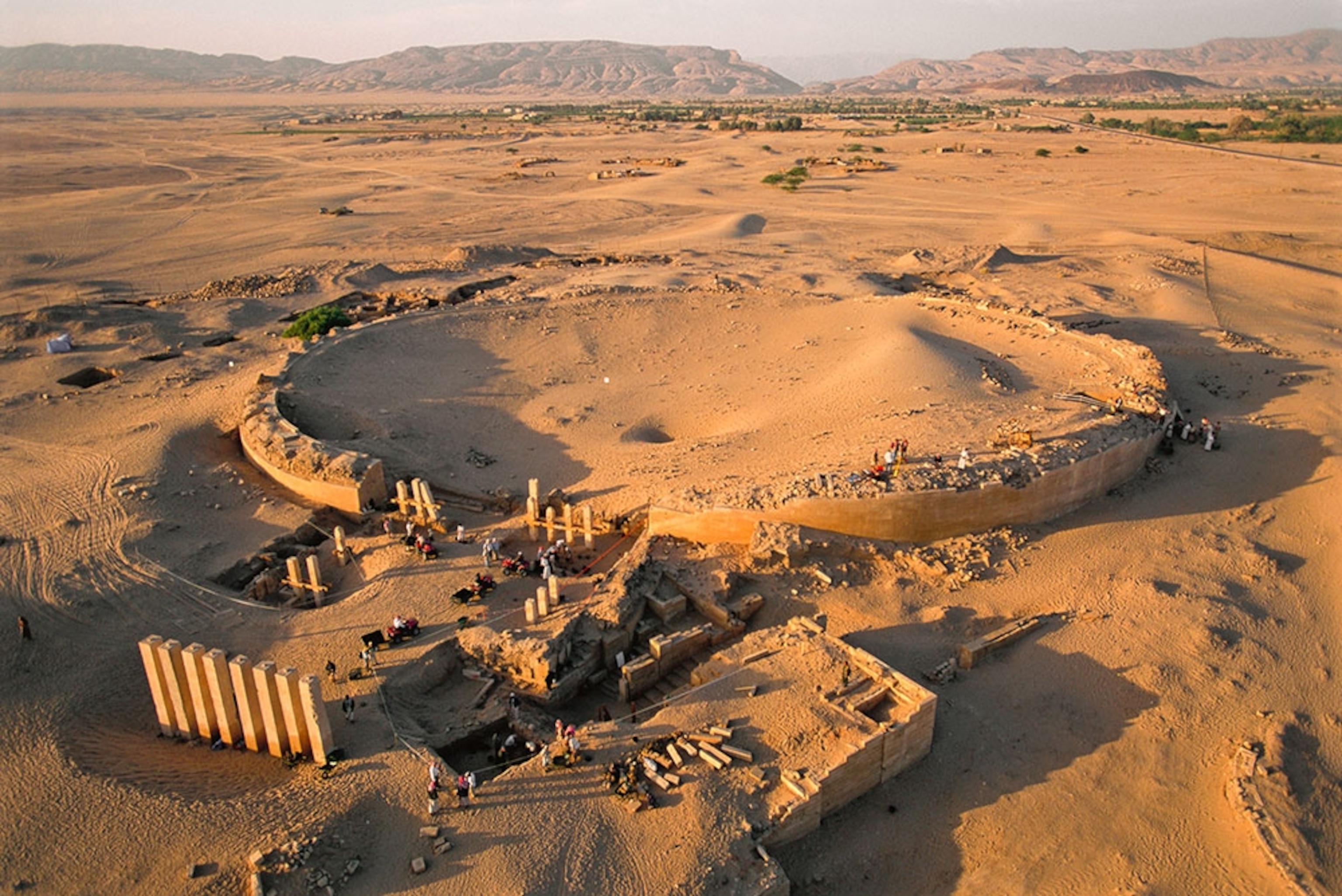 Sheba's home: Mahram Bilqis, the sanctuary of the Queen of Sheba, was partially excavated in 2004, when Yemen was a more peaceful place. The legendary Sabaean leader is mentioned in both the Bible and the Quran, and she ruled over a center of agriculture based on a dam that controlled seasonal rains to irrigate the Arabian desert. The site was first excavated by the American adventurer Wendell Phillips in the 1950s, but has been overrun several times since by windblown sand.