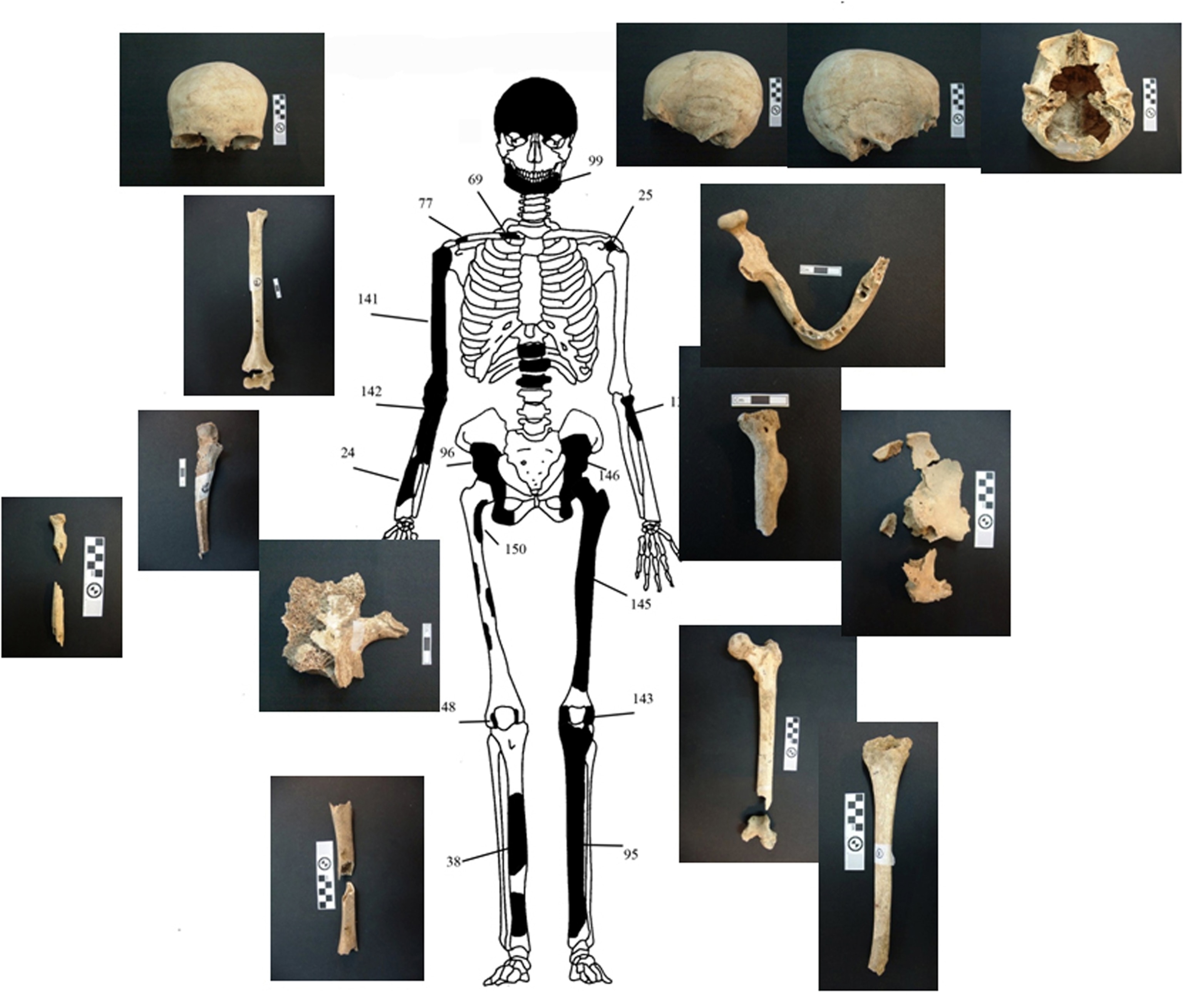 About a quarter (157) of the remains are intact enough to allow researchers to eventually identify the gender, age, and height of the individuals, while the rest are fragments of vertebrae and other skeletal remains. An unknown number of animal remains, including bones of horses or donkeys, were also found in the chamber.