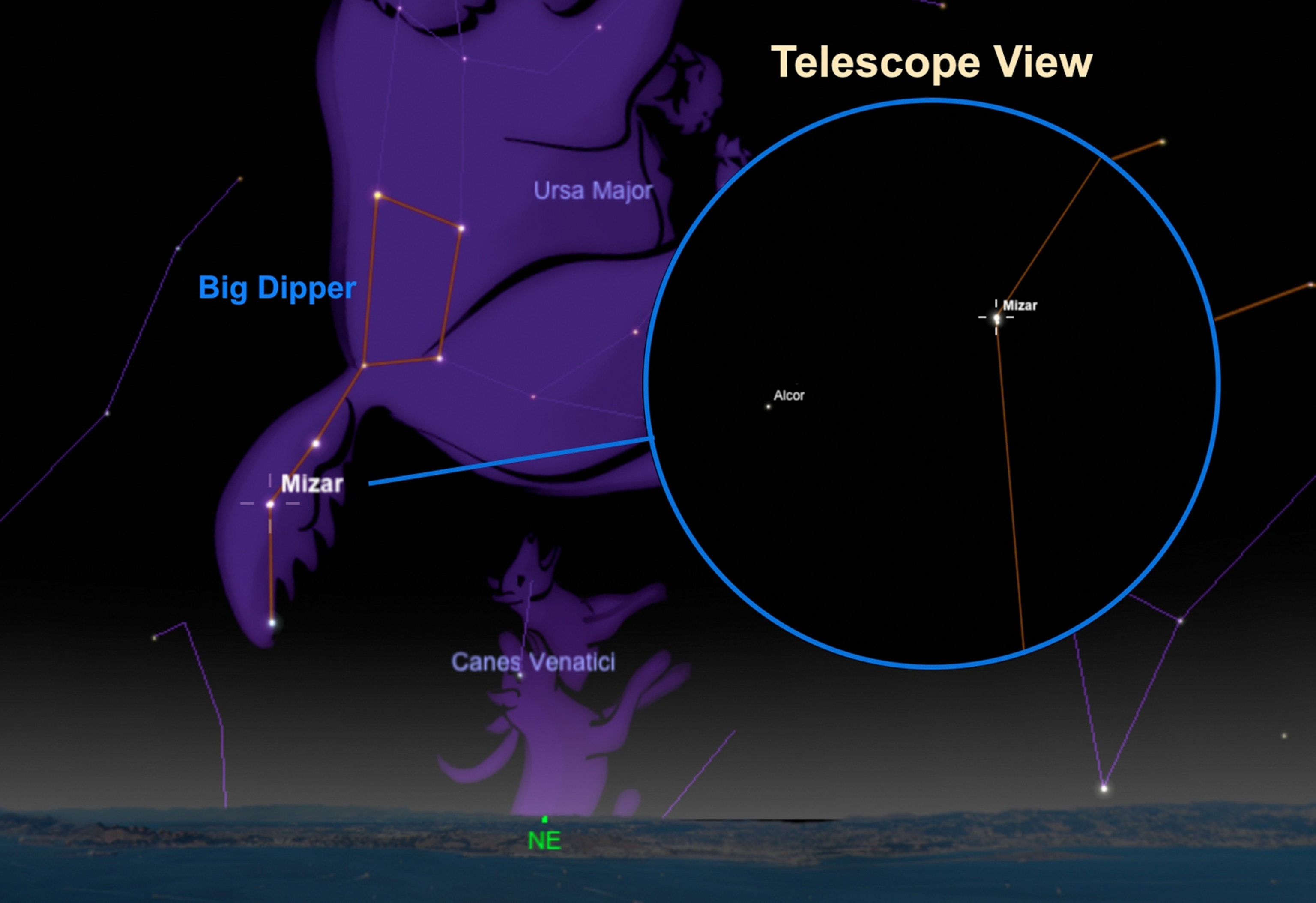 Known affectionately as the Horse and Rider, Mizar and Alcor are an eternal favorite for backyard astronomers with binoculars and telescopes and have traditionally been considered a good test for the naked eye. Ancient Persians are said to have used the ability to see Alcor as a simple vision exam—called the "test," or the "riddle"—for apprentice hunters. Can you see the pair on a clear moonless night ?