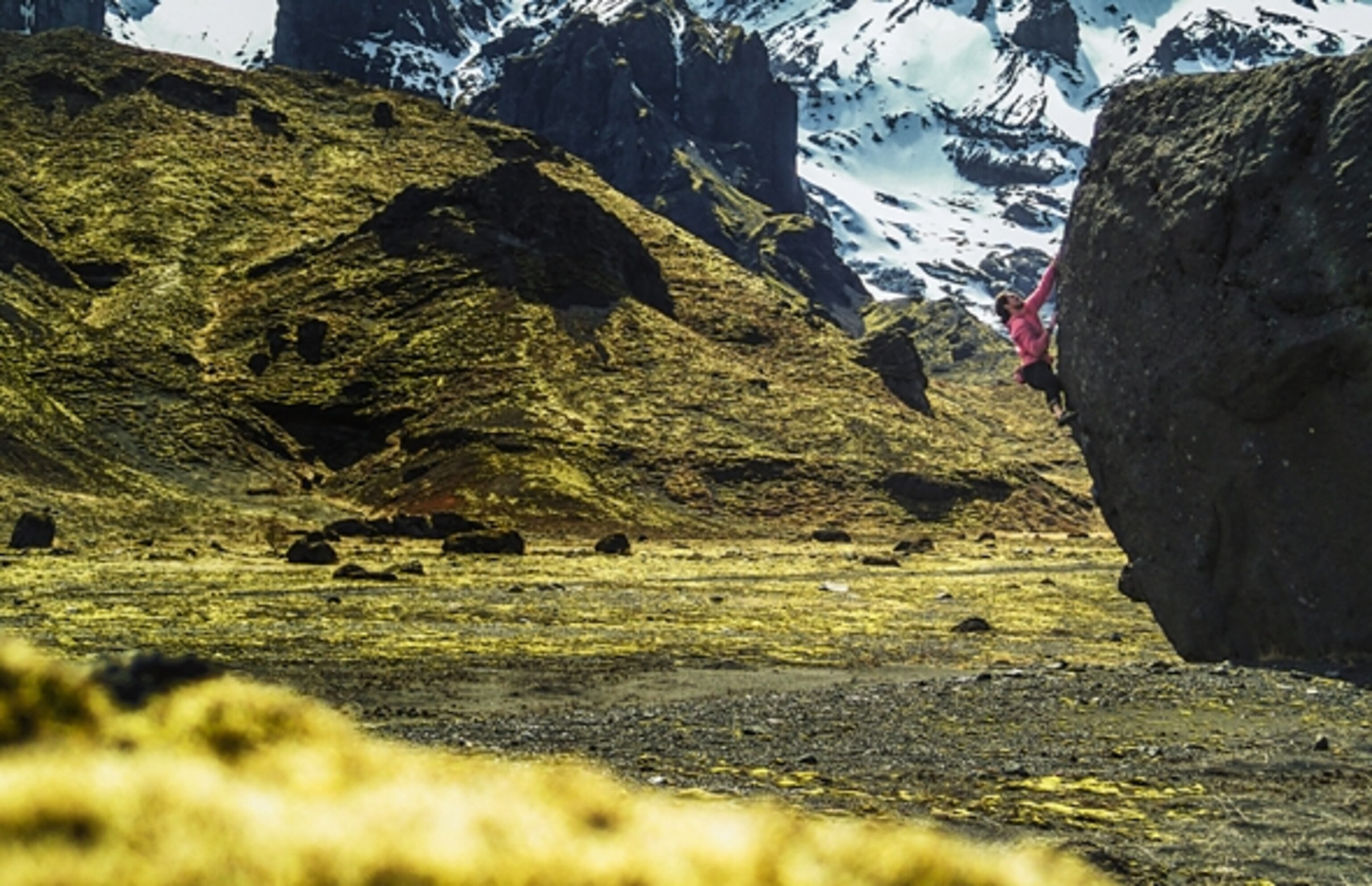 In this photo Blake Hendrix is establishing a new problem on one of the boulders we found while traveling in Iceland. While the climbing is impressive and his muscles are huge (yes he paid me to say this) it was important for me to not just capture a tight image of climbing. I did not want to lose the magic of the place. Instead I wanted to show the whole story–the landscape, the mountains, the boulders, AND the climbing.