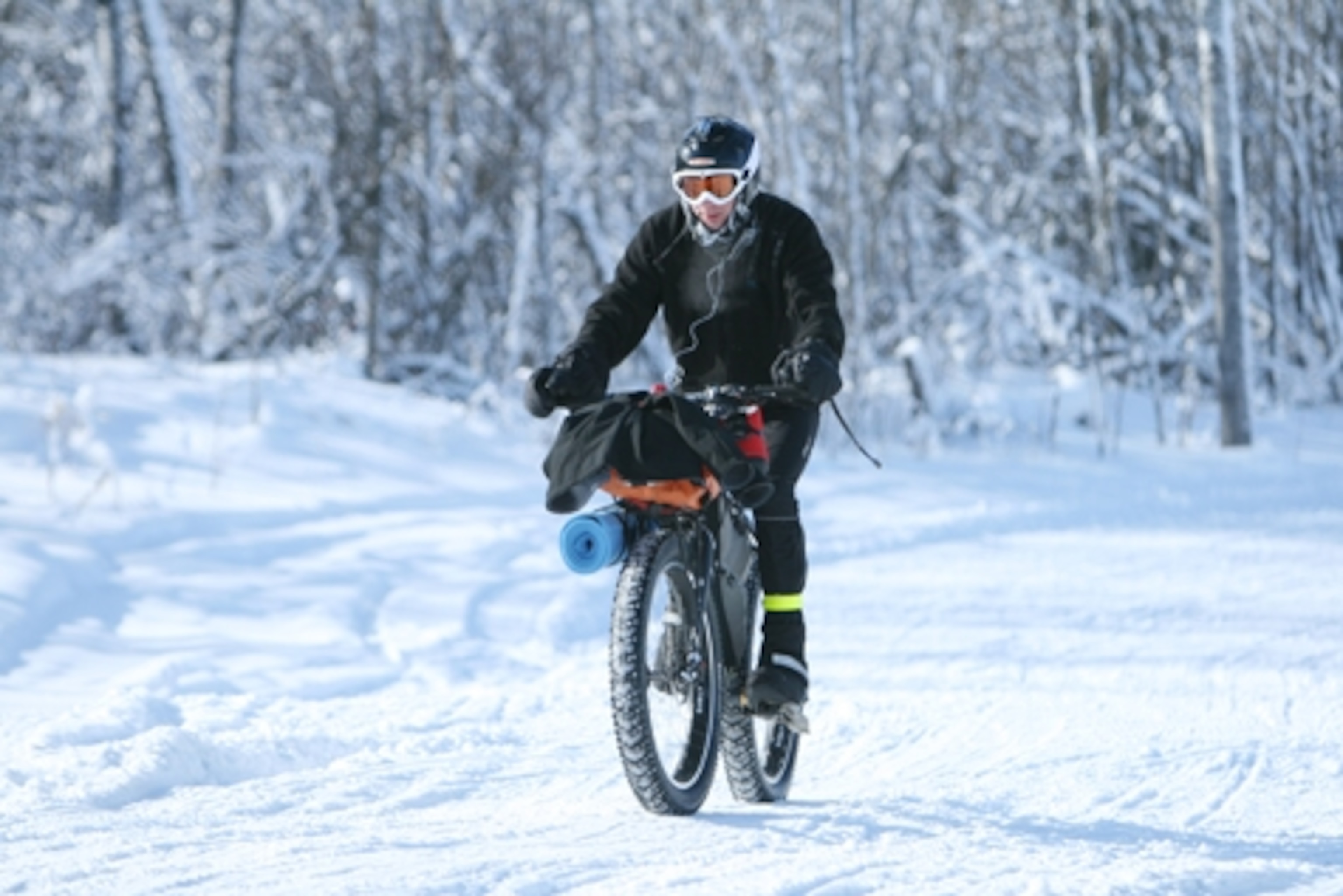 pedal with fat-tire snow bikes, and they must finish with 15 pounds