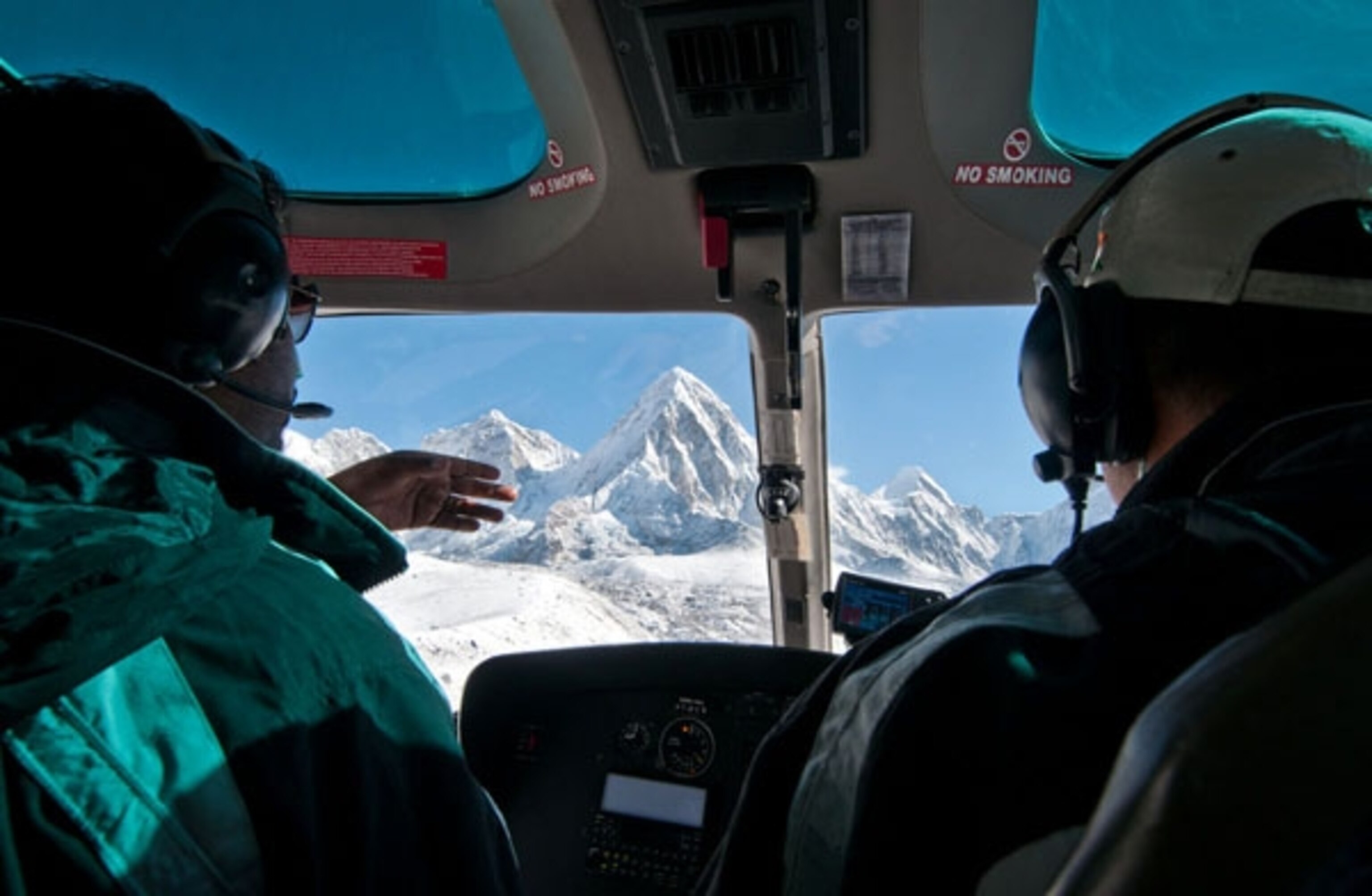 When I first traveled up the Khumbu with the expedition, I had taken almost a week and a half to reach Base Camp including acclimatizing days. With a little help from Jiban our trip organizer, I was able to secure a seat in a helicopter flying up valley. Terrain that had taken me so many days to cross disappeared behind us in minutes. Seeing the peaks I had looked up at for so many weeks from the vantage of the air was like looking at a new landscape.