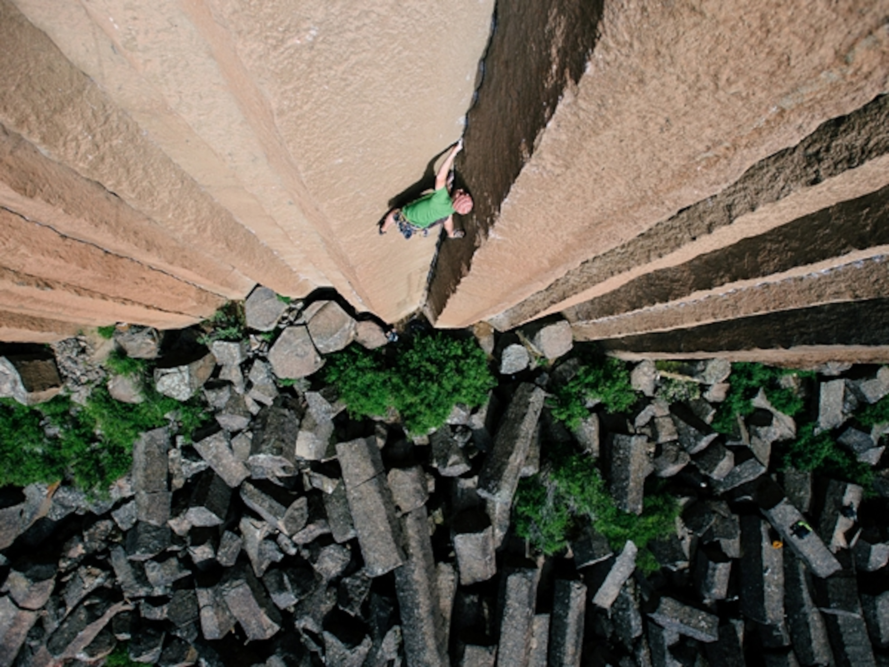 “There are thousands of miles of columnar basalt throughout the Columbia Plateau, but Trout Creek is special,” says climber Blake Herrington, seen here on an approximately 90-foot route called Purple Pinky Eater, rated a 5.12. “For just a quarter mile or so, the rock quality is stellar, forming steep cracks and blank arêtes where the holds don’t break, the cracks don’t crumble, and the gear will hold.”