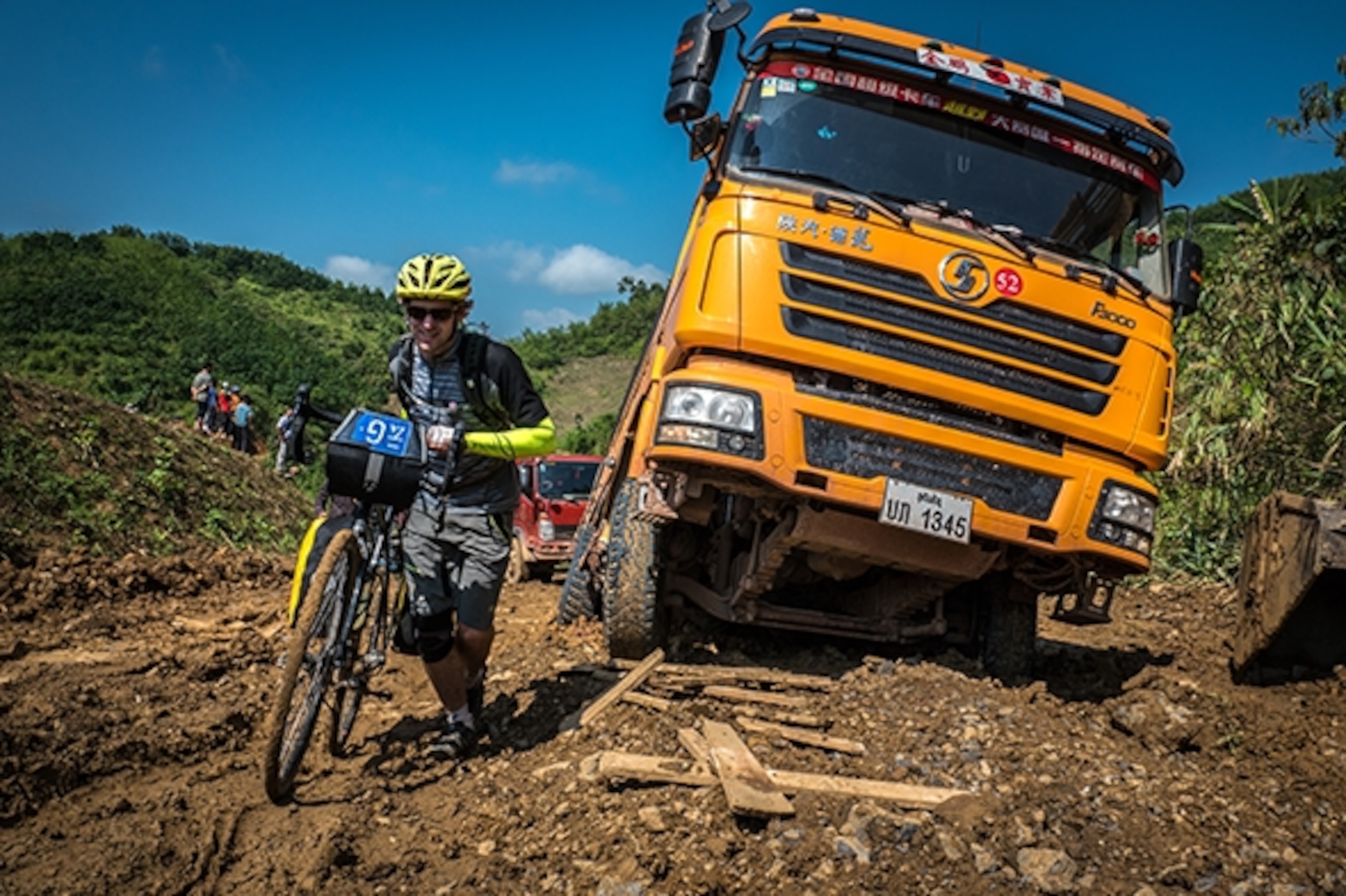 It was 7:30 in the morning, and we were already blanketed with a thin film of fine red dust. Any relief the high-altitude provincial capital of Phongsali had given us from the mid-May heat was long gone. Our jet-black bicycles, gear piled atop them, were orange and silty as we rolled up, unexpectedly, to the behemoth trucks just outside town. Uniformed Chinese hydropower workers squatted underneath the hulking truck undercarriages to avoid the morning rays.