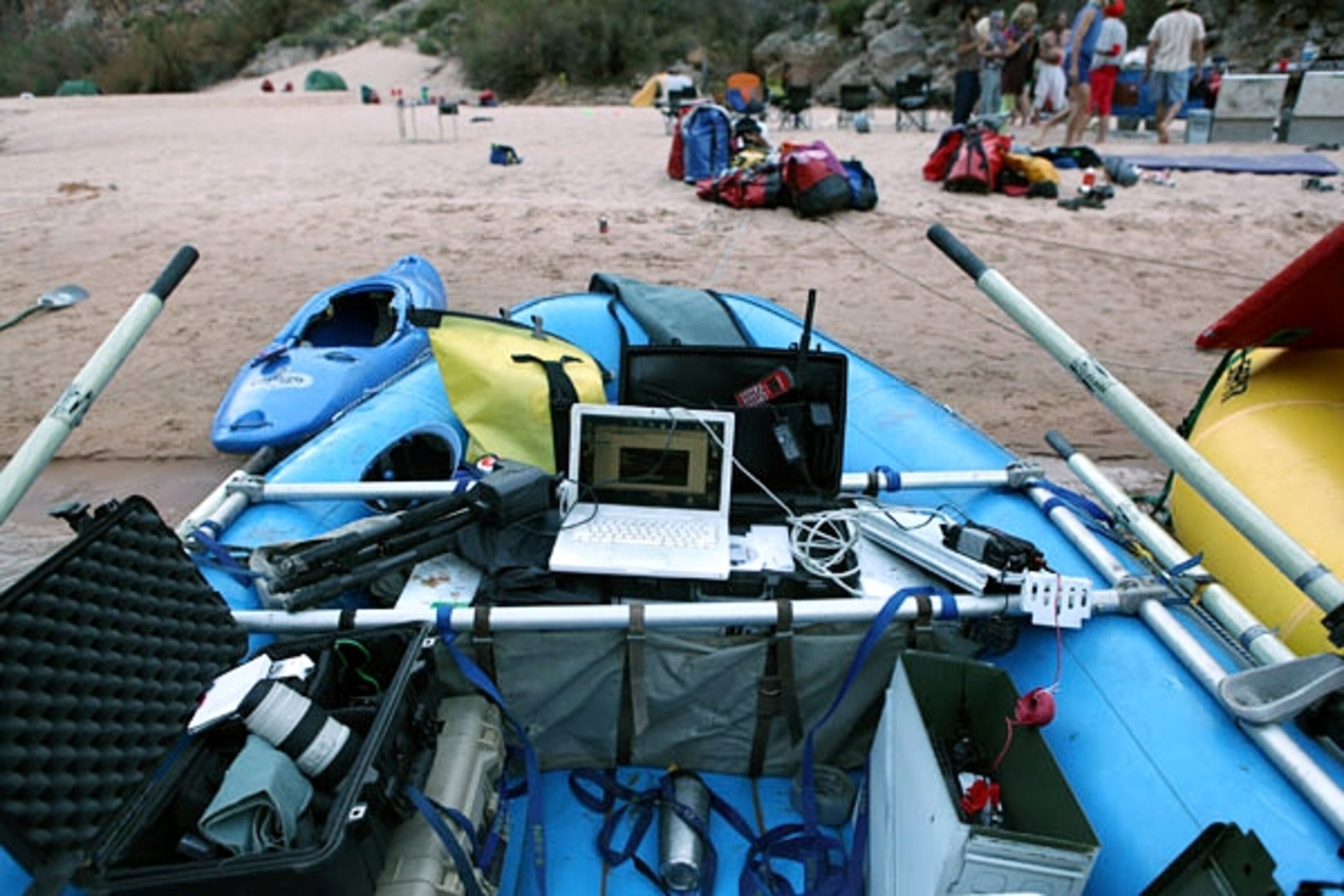 Our electricity is generated via capturing light using an array of solar panels. Combined they generate roughly 120 watts, which is enough to power our Macbook Pro, re-charge our camera batteries, and power our Globalstar phone. Impressive as that sounds it is not nearly enough energy to power a toaster oven. As there are few hours of direct sunlight due to the high canyon walls, we tend to use the panels during the day and save the electricity in a battery.