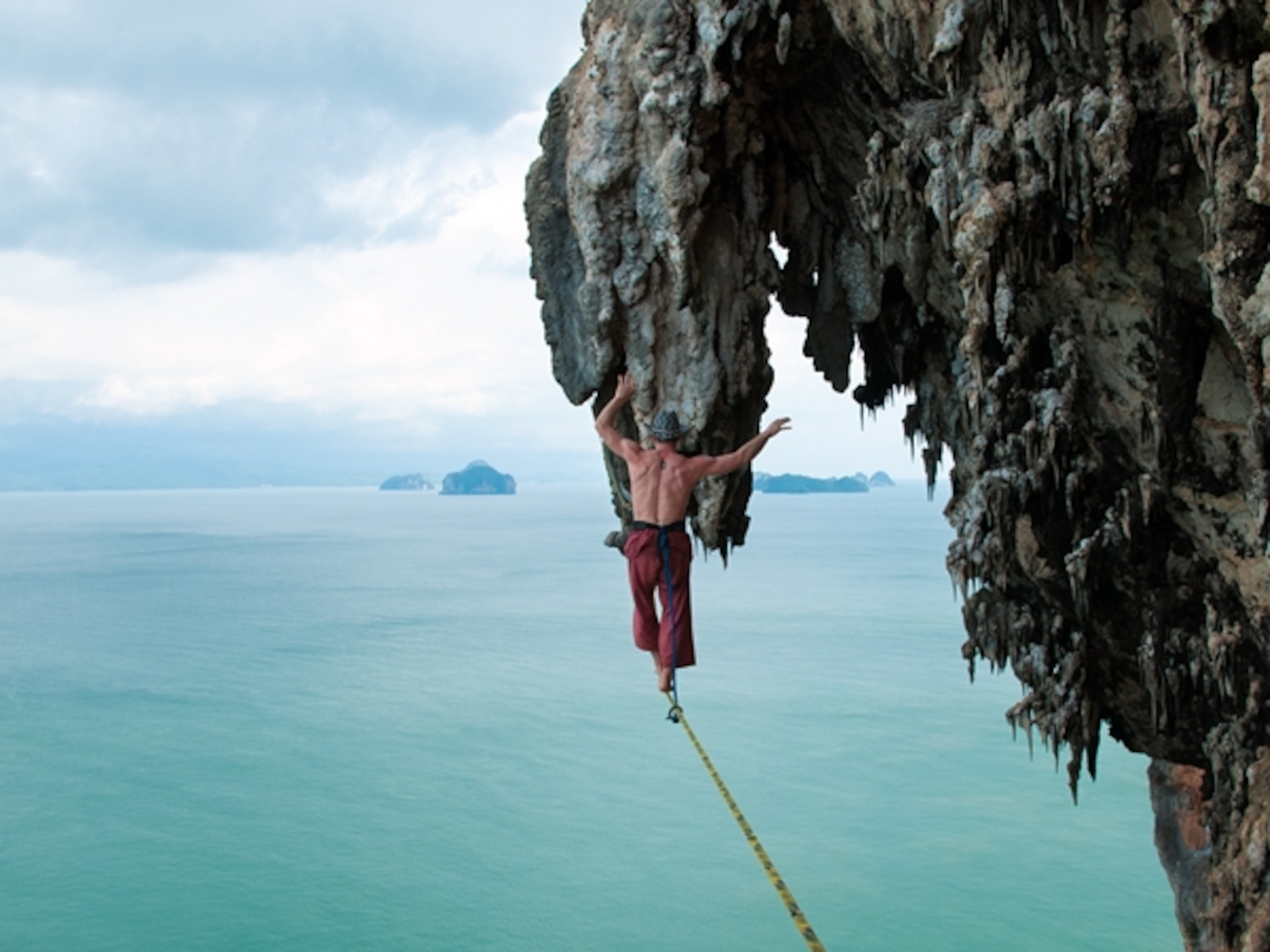 “Should I grab the stalactite with my hands or turn around on my feet like a real pro?” recalls slackliner-photographer Jared Alden of this moment on an unusual stalactite highline on Koh Yao Noi island in Phuket, Thailand.