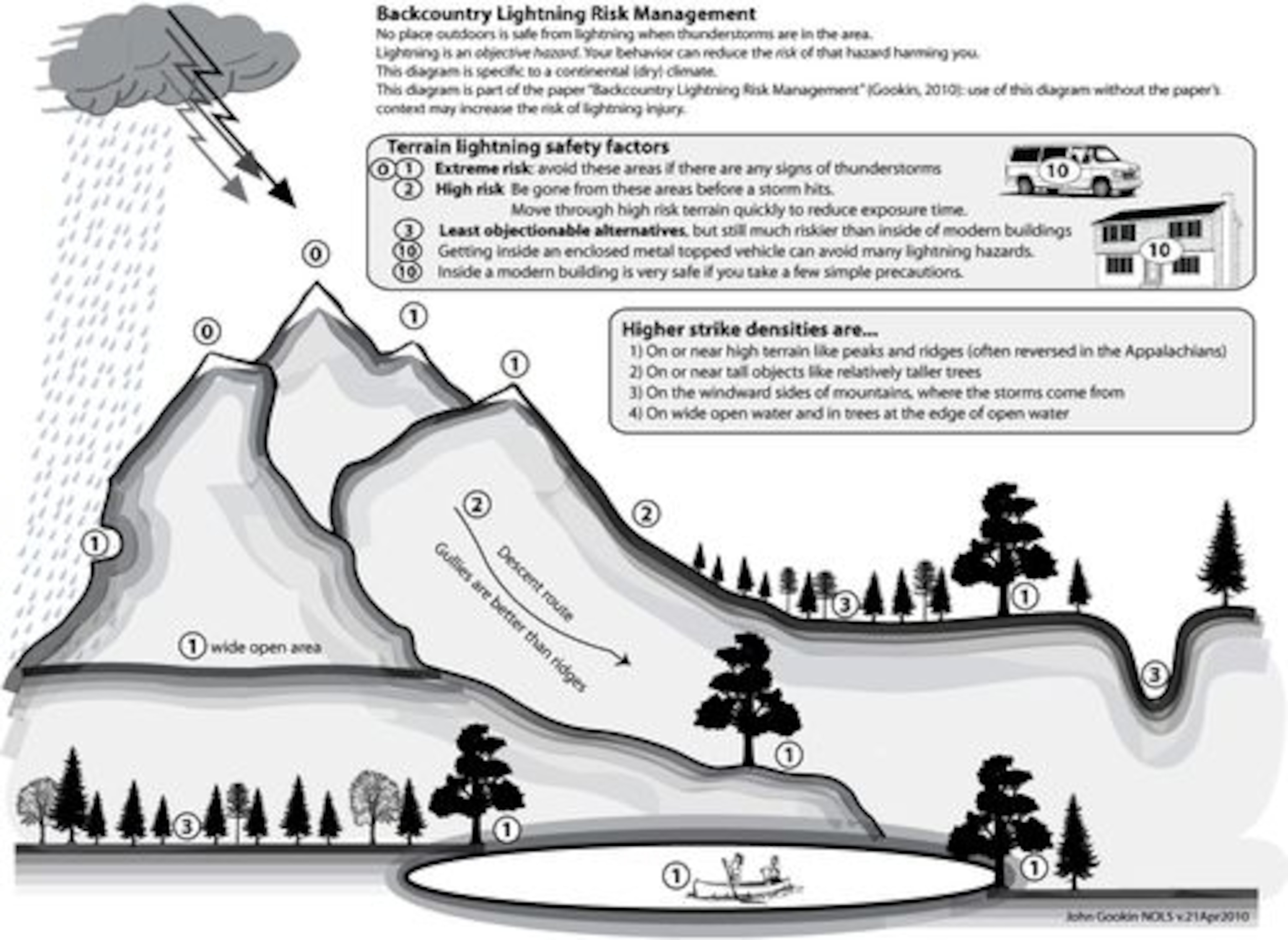 For more on lightning, read NOLS Curriculum Director John Gookin’s 2010 Wilderness Risk Management Conference article Backcountry Lightning Risk Management.