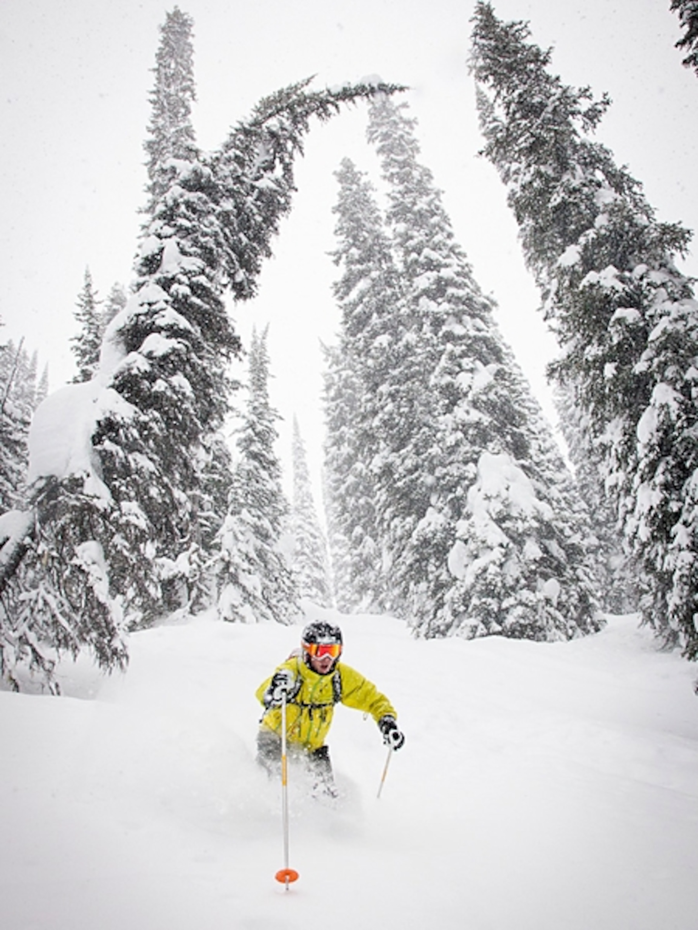 A former mining town wedged in a remote valley between the Selkirk and Monashee mountains, Revelstoke has long been renowned for its snow-choked winters (over 80 feet fell here in the winter 1971-72, establishing the Canadian record for most snow in a single season), but it wasn’t until 2007 that Revelstoke Mountain Resort opened to take advantage of the bounty. Featuring 5,620 vertical feet of terrain, it quickly snagged the title of biggest vertical drop in North America from Whistler. Most expert skiers spend their time on the top couple thousand feet, where there’s an abundance of steep pitches.
