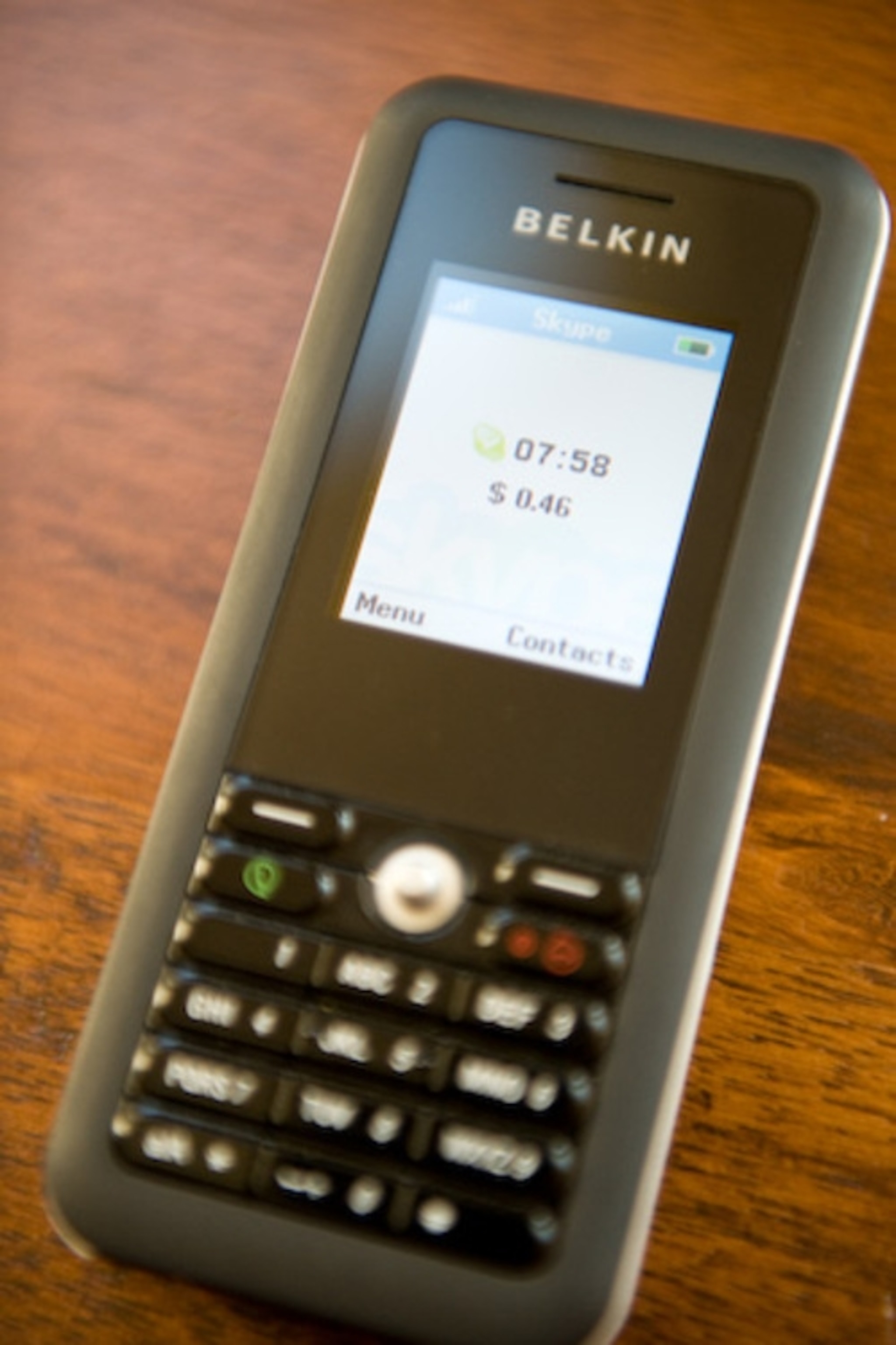 Like 300 million other people, I used Skype, the voice over internet phone system. But this wasn’t computer to computer—I was calling our home line on Belkin’s Skype handset and talking just as I would on a cell phone.