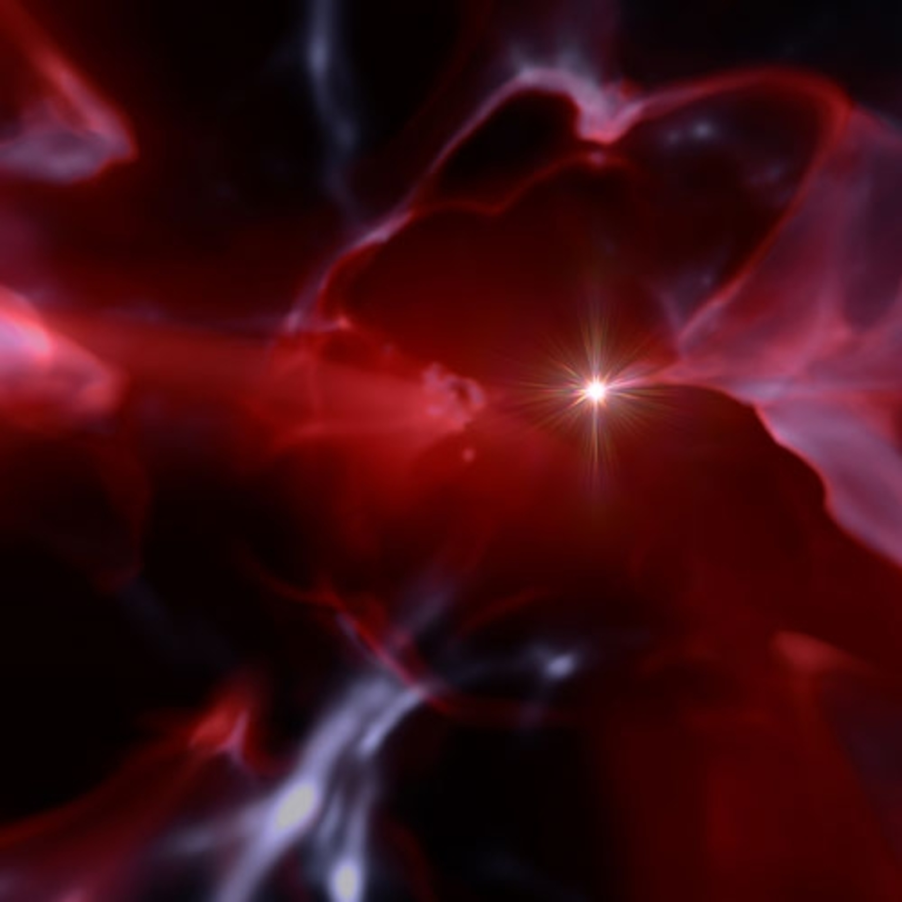 In the early universe, only 300 million years after the Big Bang, the first stars form from clouds of gas drawn together by the gravity of the mysterious substance called dark matter. See more photos below.