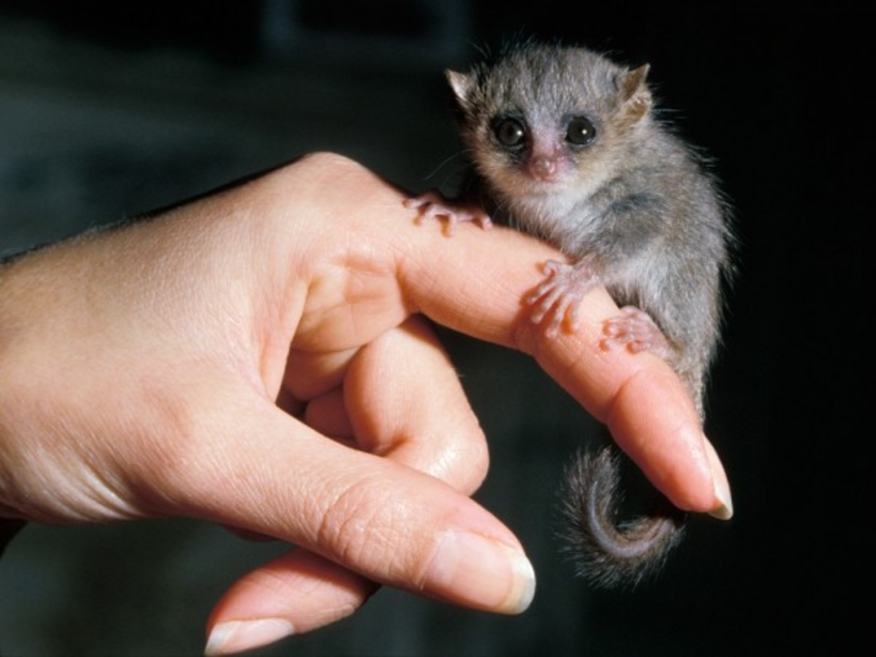 How individual gray mouse lemurs, like this one perched on a finger, approach new objects may provide a hint about how well they would survive environmental changes. PHOTOGRAH FROM A&J VISAGE/ALAMY