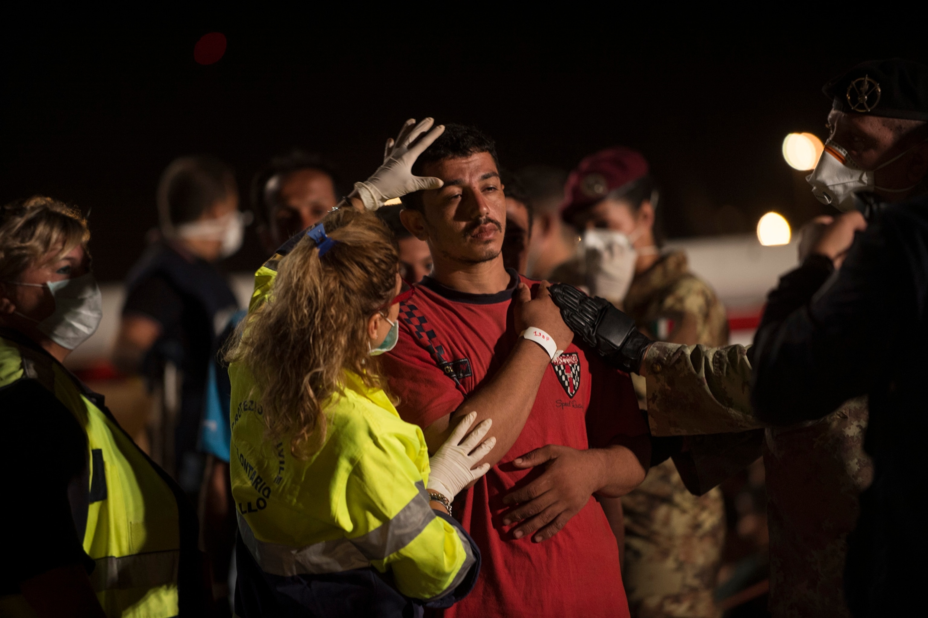 PALERMO, Italy—On a mid-September afternoon the sun beat down on cruise ships and freighters moored in Palermo's port. In front of white canvas tents—impromptu clinics erected earlier in the day—masked medics from the Italian Red Cross, police officers, fire fighters, employees of the Dipartamento della Protezione Civile (Civil Protection Department), priests, translators, officials with the local prefecture, and journalists waited expectantly. Ambulances and water trucks stood nearby.