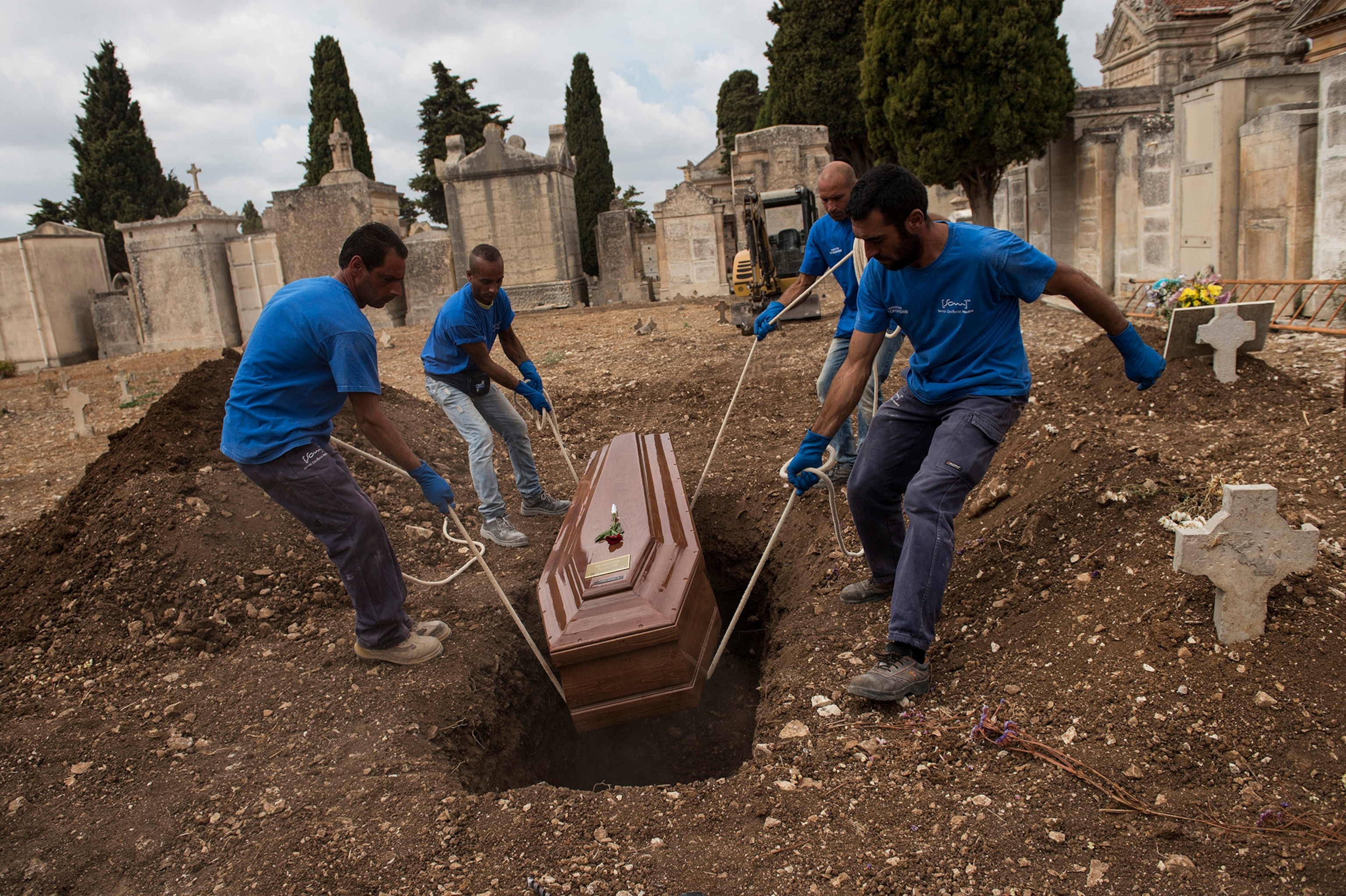 Don Sergio Mattaliano, a priest and director of Palermo's branch of the international Catholic relief organization Caritas, had seen such scenes here many times in recent months. "This is a hard moment—their arrival," he said. "But much harder times come when they have to assimilate into society, learn Italian, and start life over again. There is so much fear and uncertainty for them in this new world."