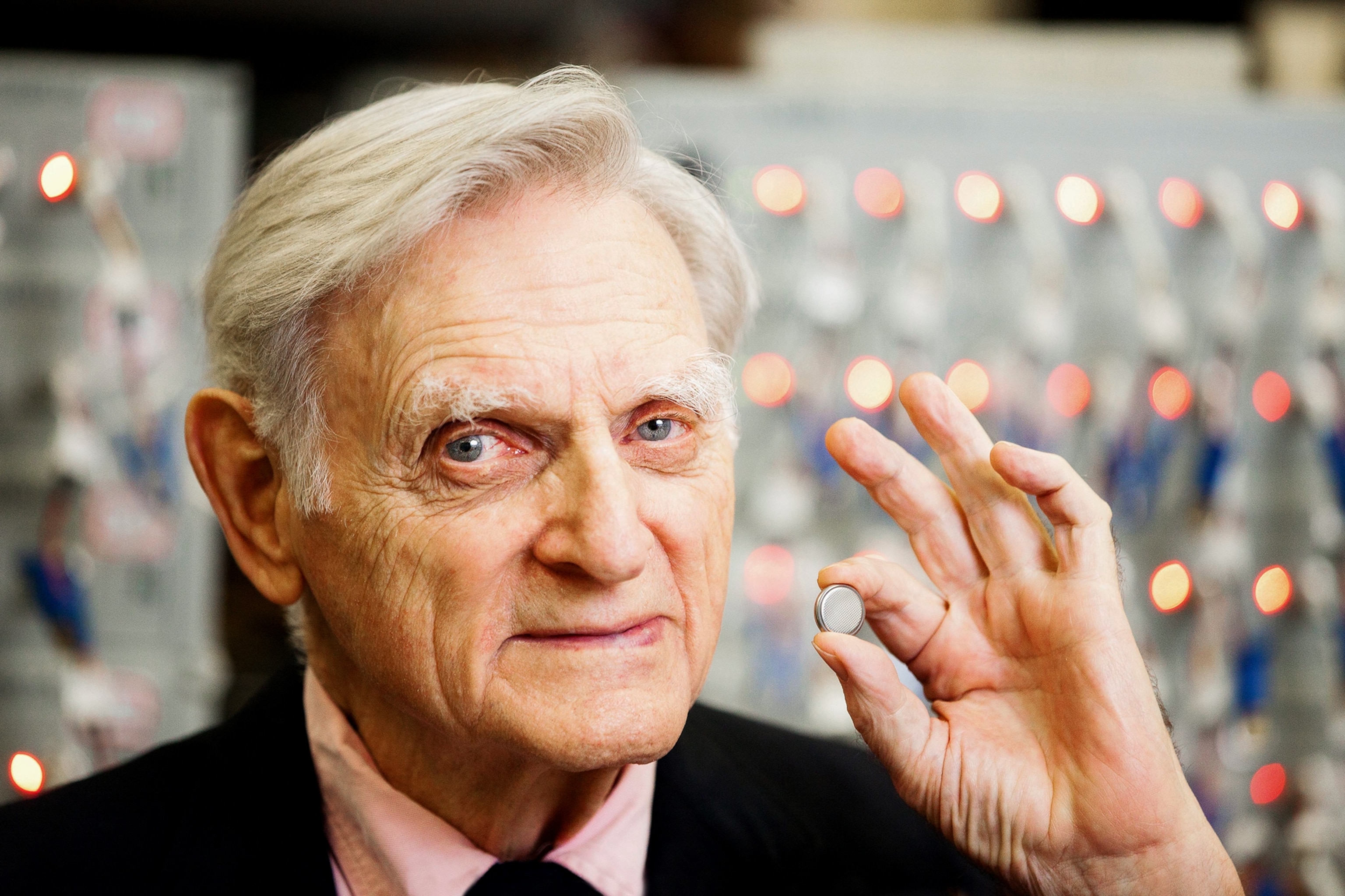 But he grew up to be this extremely warm, self-confident, and funny person. He was also dyslexic, so it's a miracle that he went this far. In 1980, at Oxford University, where he was a professor, he invented the lithium-ion cathode: the nervous system of the battery. He's now 92 years old, teaching in Austin, Texas, and he's still intent on inventing the next big thing in batteries.