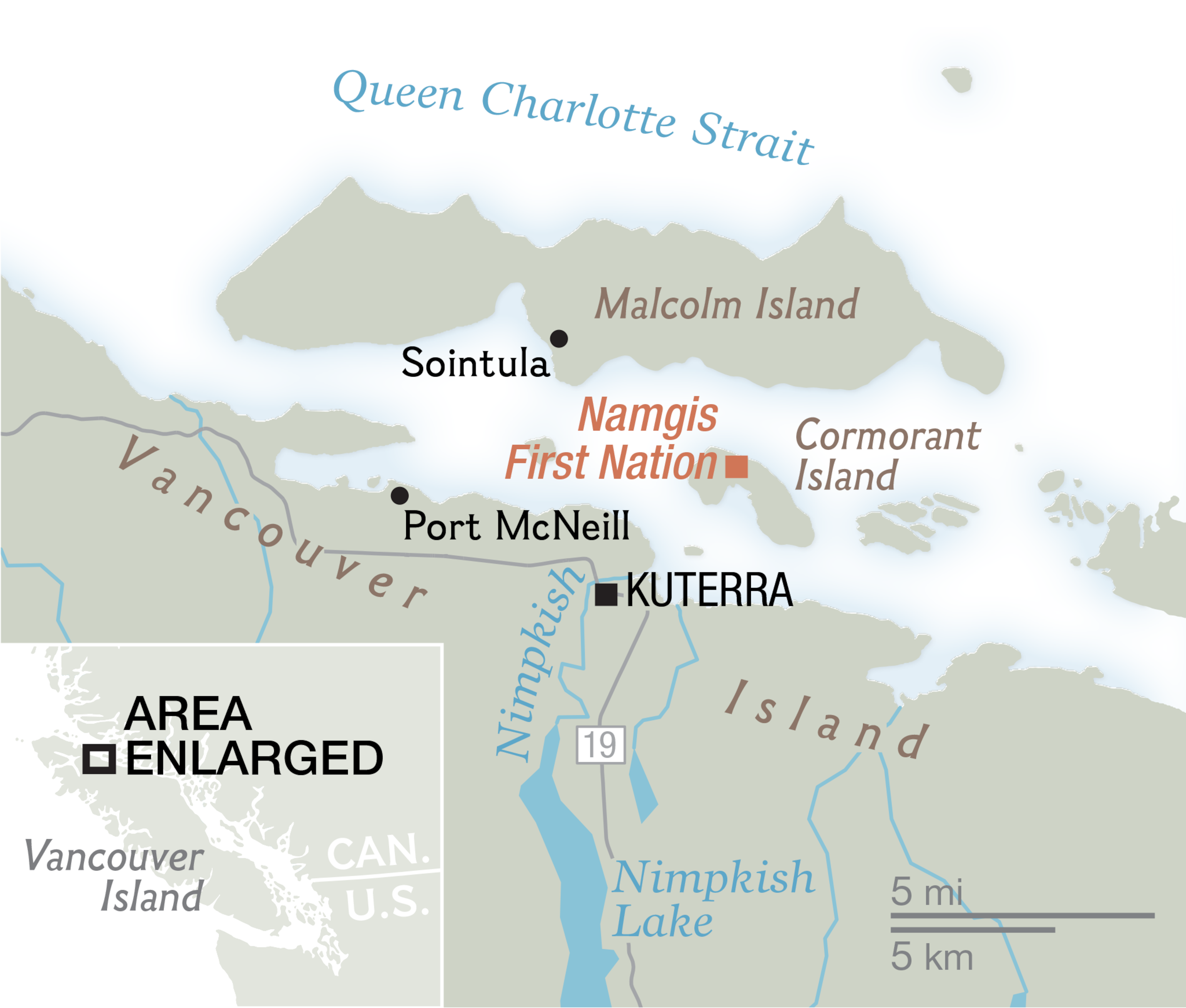 Port McNeill, British Columbia, CANADA — For centuries, perhaps millennia, the Namgis First Nation fished a wide and glassy river that barrels into the straits separating Vancouver Island from mainland Canada. According to legend, sockeye salmon were so plentiful that the Namgis could simply redirect the river and trap seemingly endless runs of fish in ponds outside their homes.