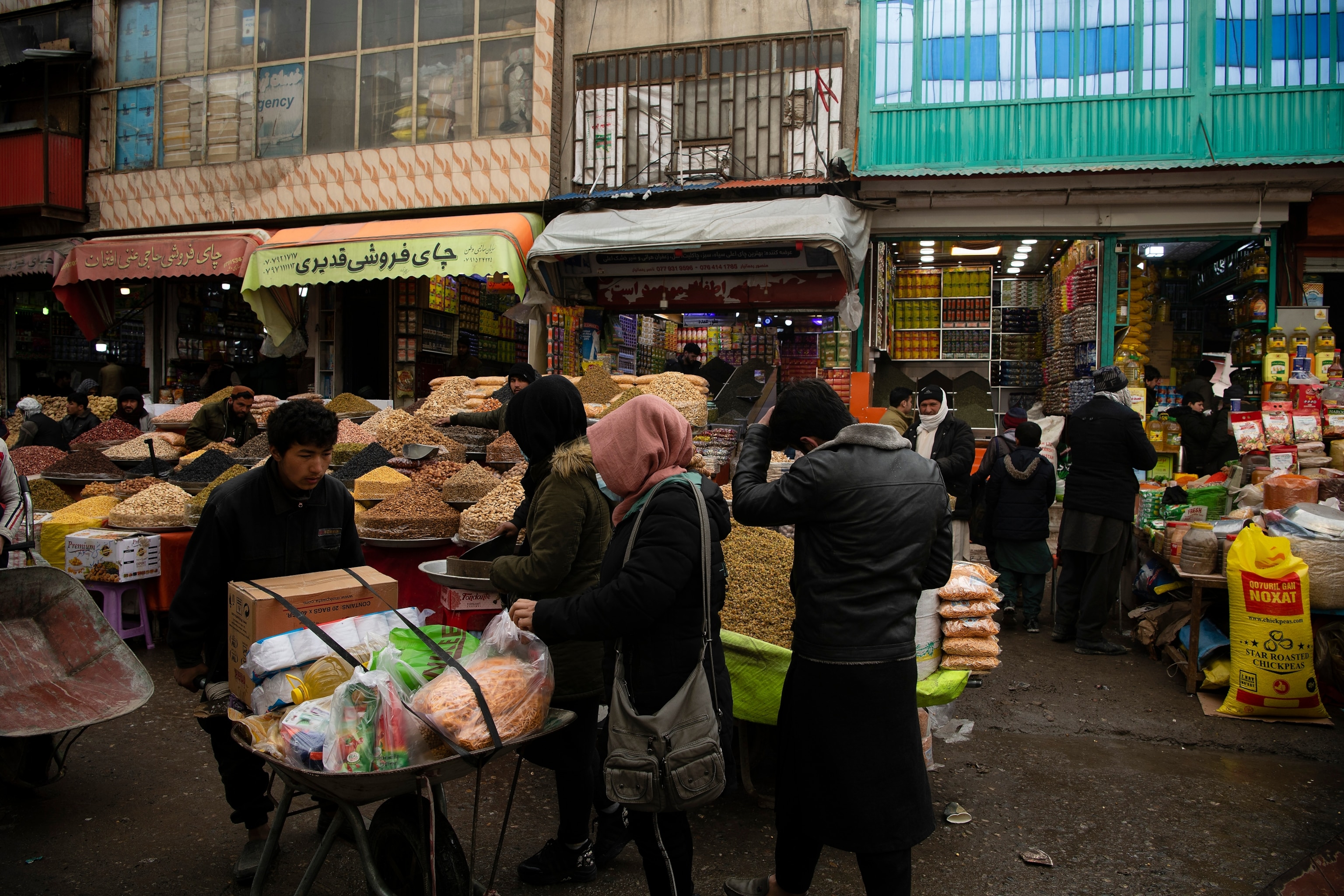 Poverty is growing even in the capital, where the middle class has traditionally been large. Early one morning, two friends head out to a large market in Kabul where lentils and grains are sold from open sacks. The 24-year-old and the 19-year-old are there to shop for one of the 55 families they support through a secret network. (The women’s names are not being used for their safety.)