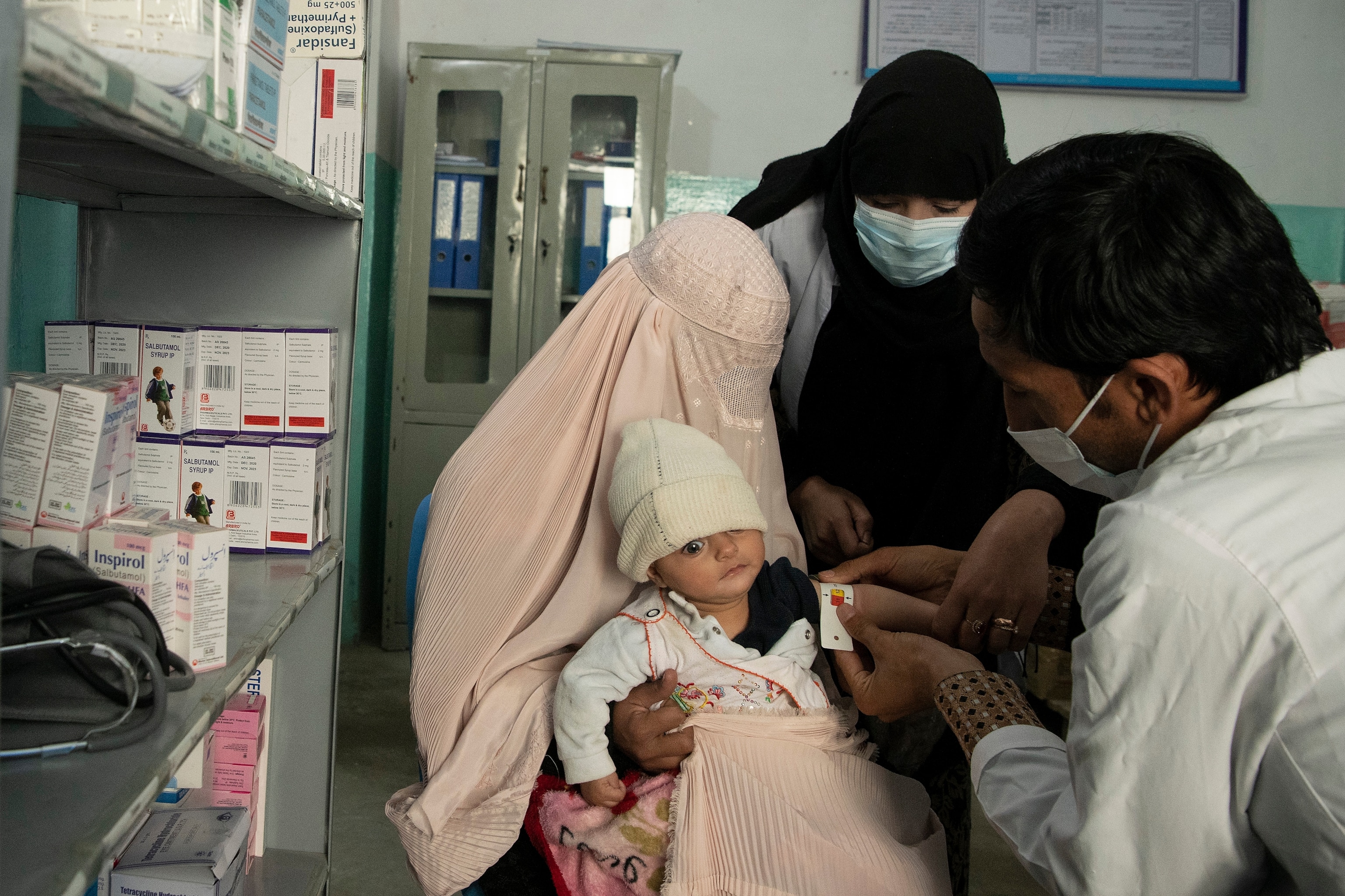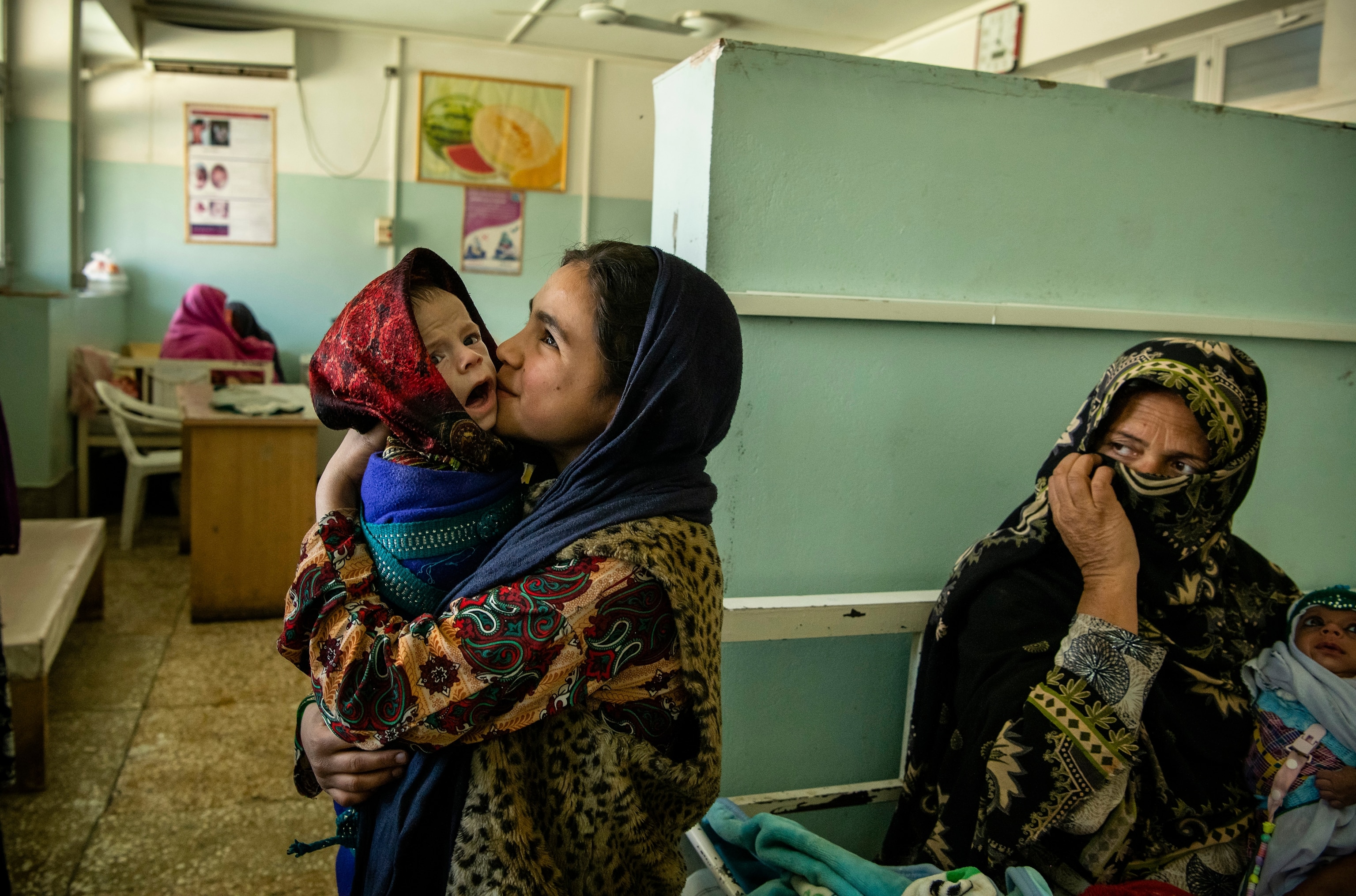 Eighteen-year-old Kamila (left) brought six-month-old Jannat to a clinic in Kandahar as soon as she sensed that her daughter wasn’t well. “Compared to other children her age she is very weak and she doesn’t try to crawl,” Kamila says. The doctor, Rafiullah Fazli, concluded that Jannat suffers from severe malnourishment but that her mother's quick reaction gives her a good chance of recovery.