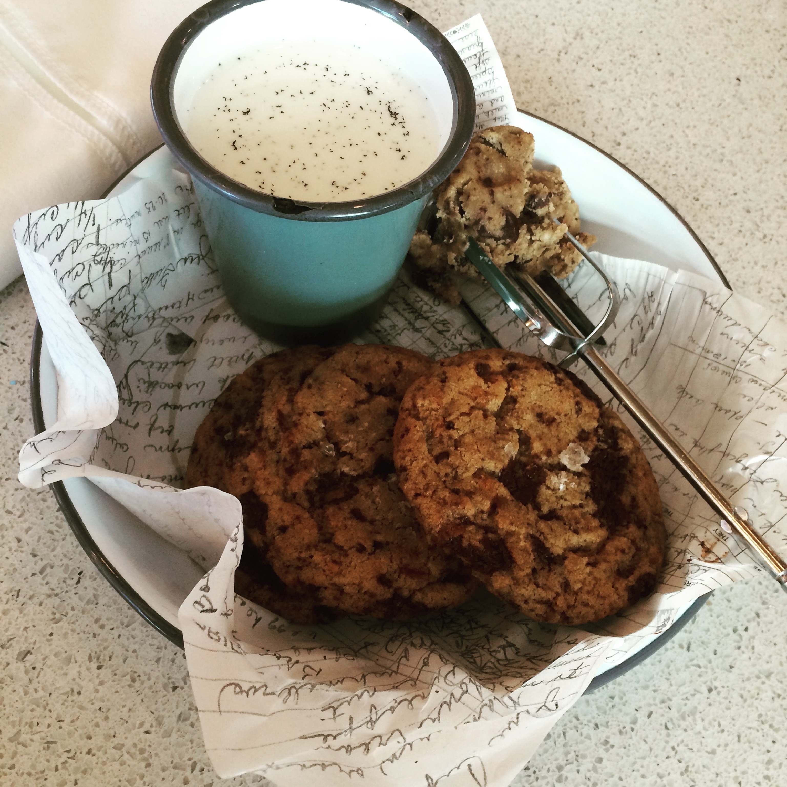 But the bakery’s breakout hit are the cookies +milk—an $8 order of three chocolate chip cookies flavored with five different kinds of Valrhona chocolate and fresh whole milk from a small Mississippi dairy flavored with specks of Tahitian vanilla beans.