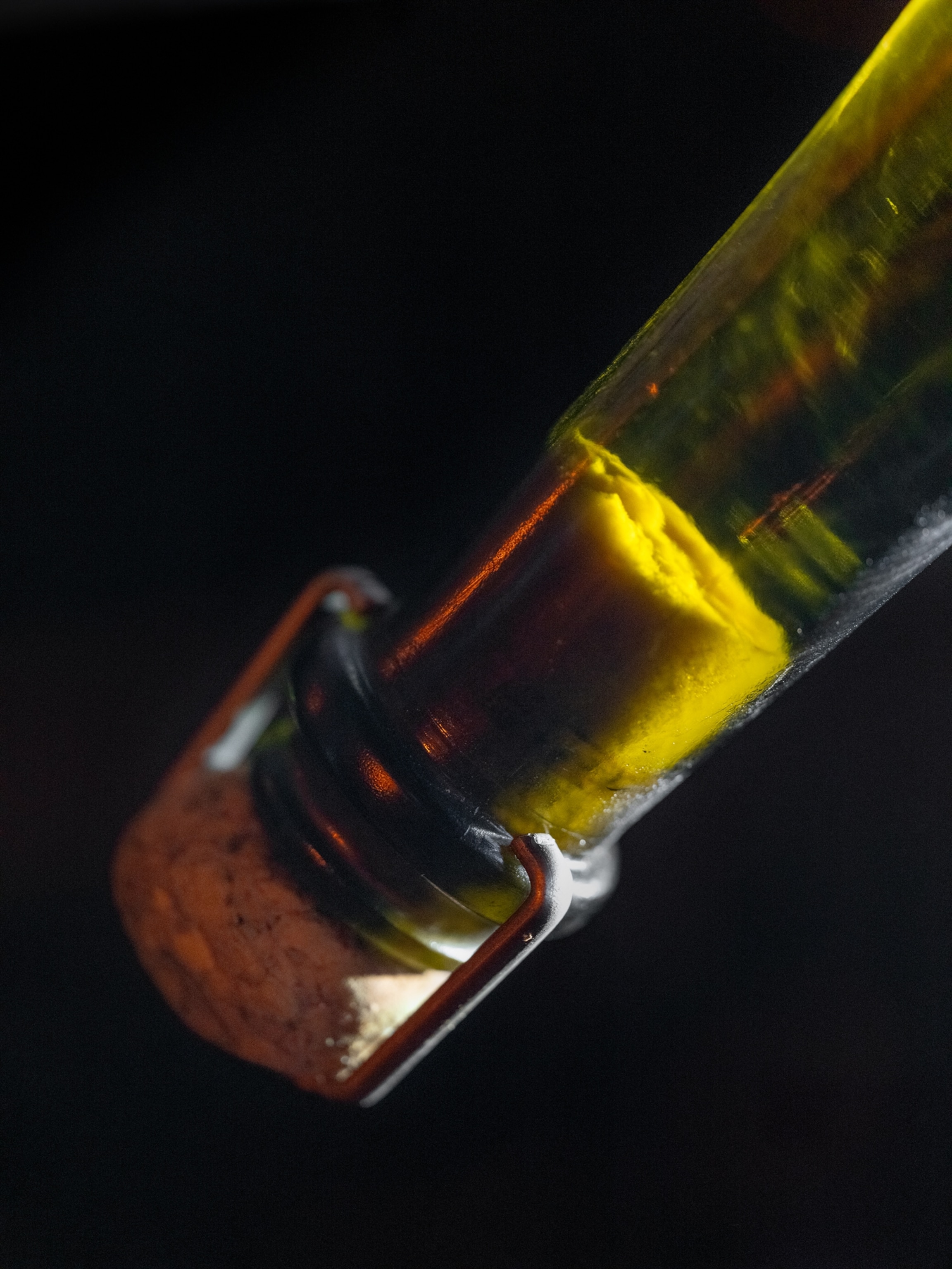 To “read the wine,” riddlers like Lopez assess the amount of sediment in a bottle and slowly manipulate the angle, axis, and rotation over the course of six to seven weeks in order to guide the léger toward the neck. Then the sediment is frozen solid and the temporary cap on the wine bottle is removed. The pressure from the bottle—the same type of pressure that causes Champagne to pop when you open it—forces out the icy sludge. The chef de cave adds a mix of sugar and extra wine to top off the liquid in the bottle before sealing it back up with an iconic mushroom-shaped cork.
