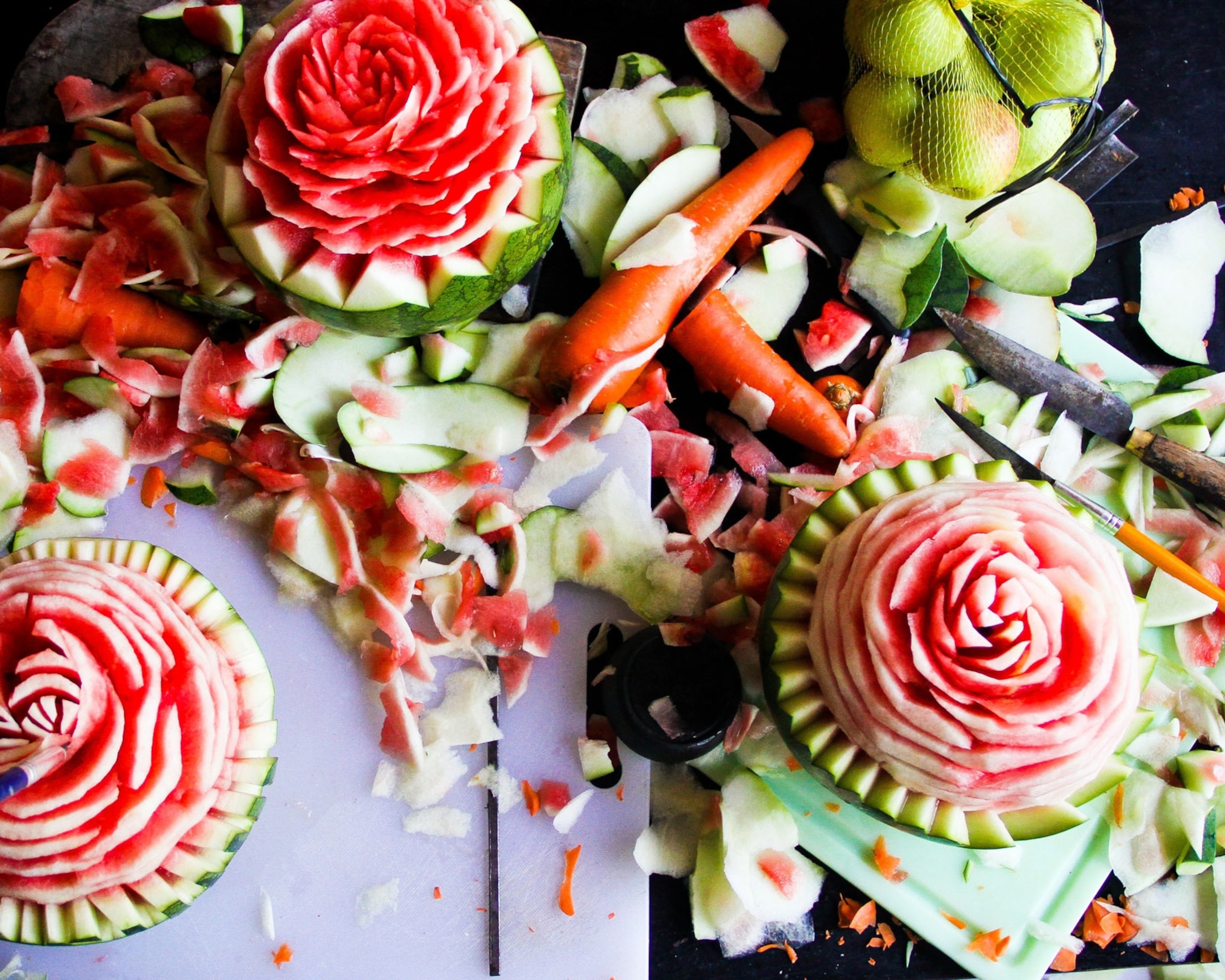This ephemeral art has been practiced in Thailand, China, and Japan for centuries. Historians are divided over which of these nations was the first to develop the ornate creations of melons, papaya, radishes, yams, carrots, tomatoes, and more (and today, of course, you can find fruit and veg rosettes adorning plates the world over), but it’s a particularly revered practice in Thailand, where children learn to skillfully yield carving knives in school.