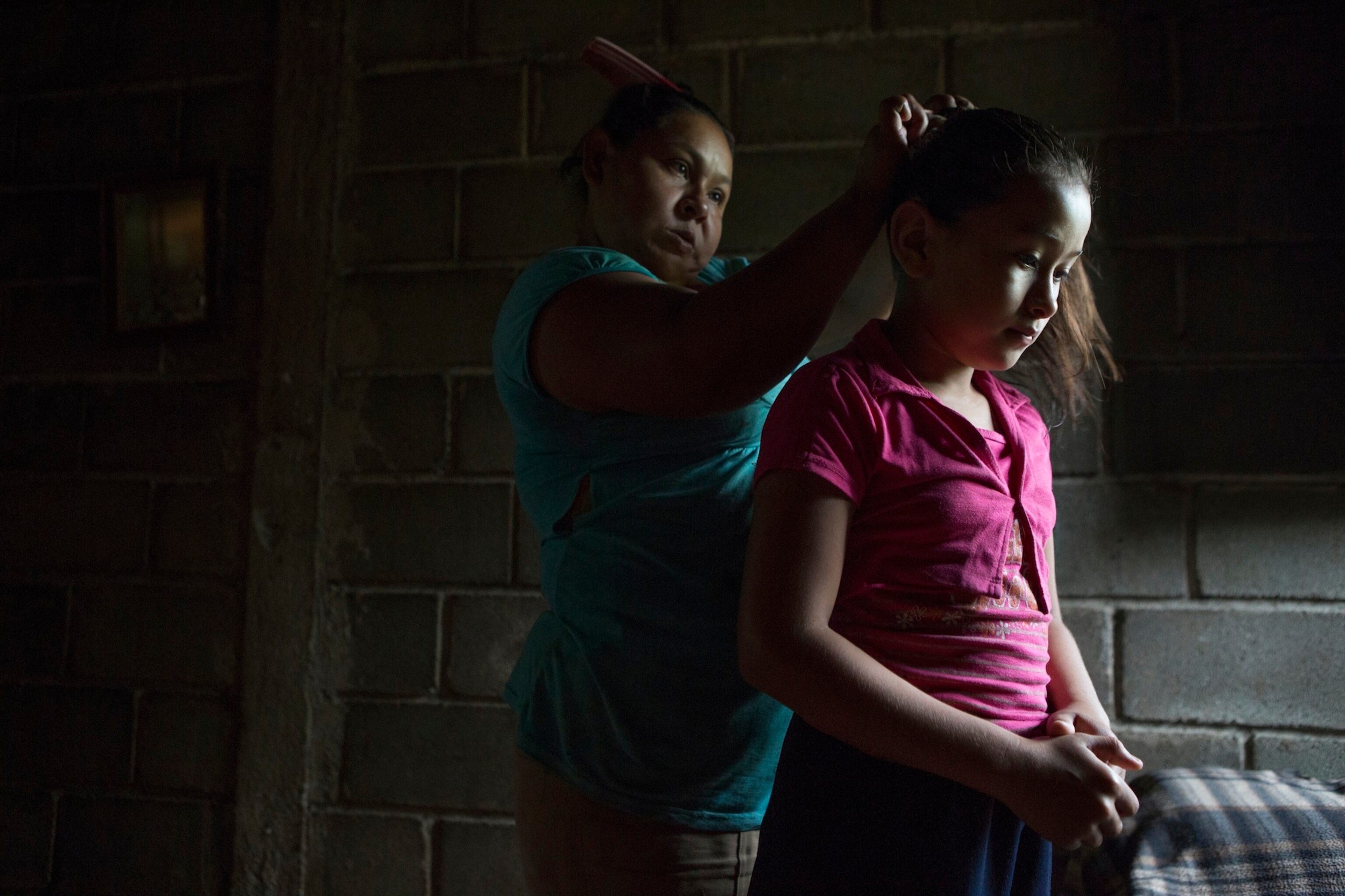 As I arrived early at Vani’s home to capture her morning routine, her mother, Maria, was helping her comb out her wet hair, the window light carving out their shapes in the sparsely furnished home. The house had electricity, but they used natural light while the sun was up. Vani stepped outside to brush her teeth in the spigot as I photographed.