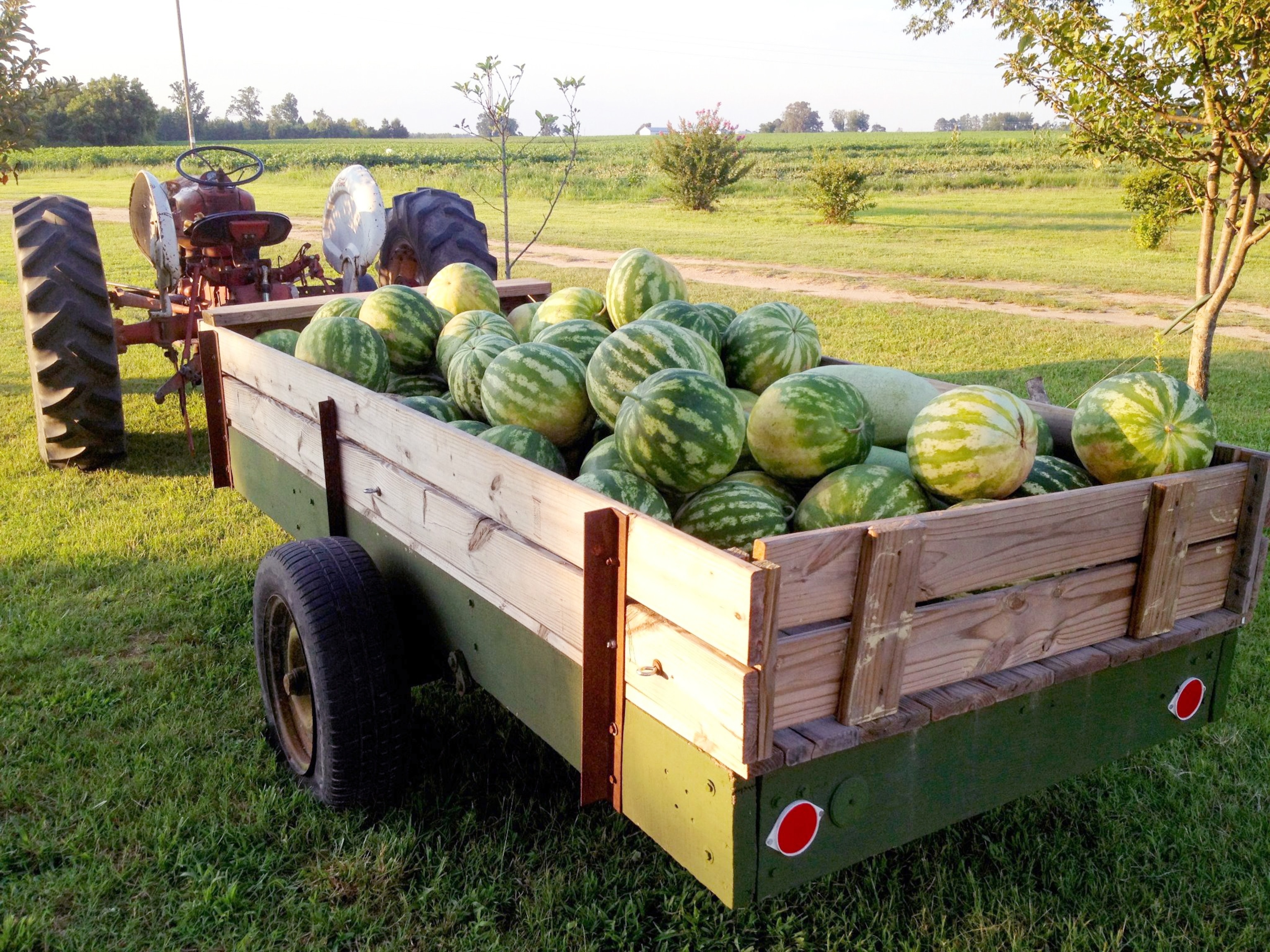 Dad takes out a long knife and hacks open a green-striped melon. He passes me a wedge about the size of my face. “Breakfast,” he says. I sink my teeth into the red, watery flesh. It’s sweet and full of flavor. “Come on,” he says, “we’ve got to go get tomatoes now.”