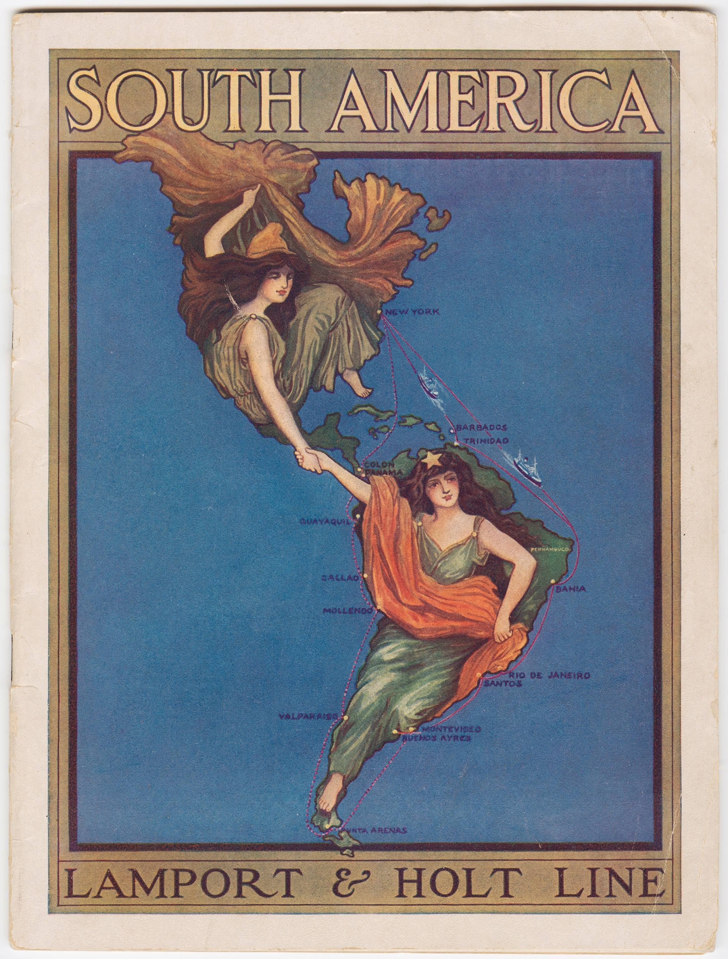According to Mode’s research, a British shipping company ripped off the logo of the 1901 Pan-American Exposition in Buffalo, New York, for the cover of its 1912 promotional brochure (above). “This brochure, which is illustrated with this cover—it's really quite beautiful—never attributes it,” Mode says. “I'm sure they were violating somebody's copyright."