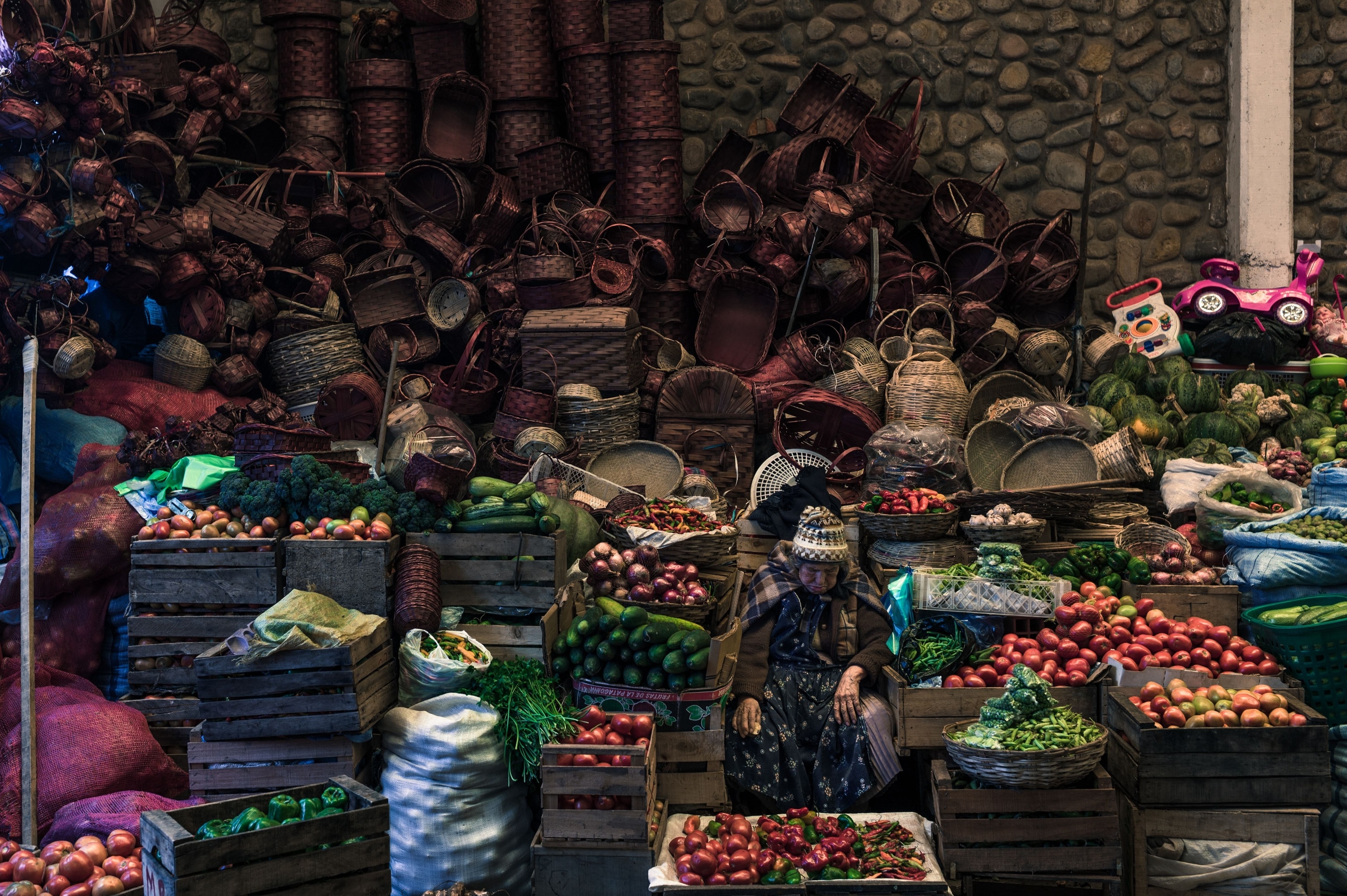 Markets, whether simple blankets spread on the ground or stalls filled with handmade peach bushel baskets, bring people together.