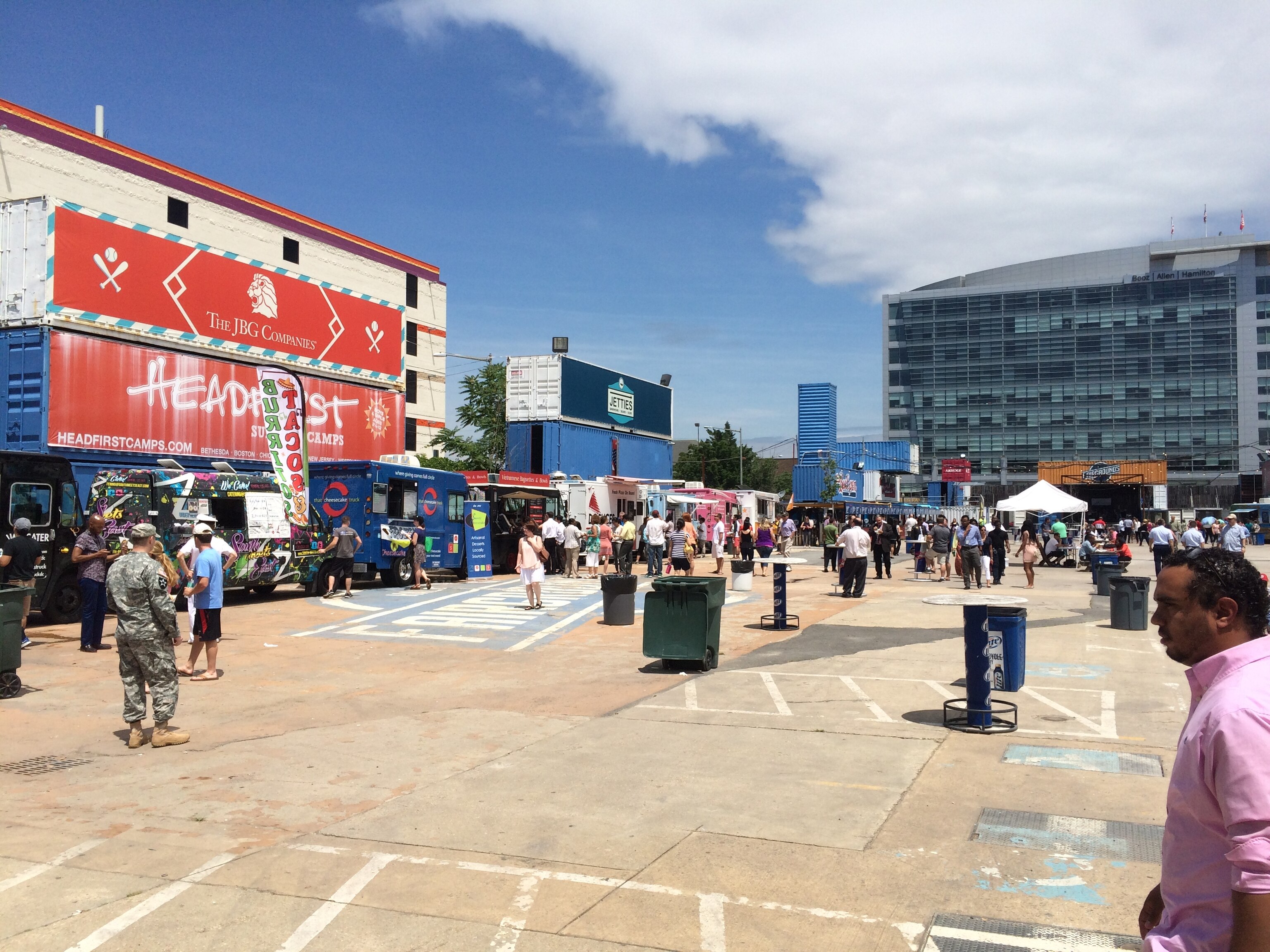 Friday, we went down to the monthly food truck festival, Truckeroo, near Nationals Park in Washington, D.C. for lunch. We found frozen cheesecake and banh mi, falafel and grilled cheese, and everything in between.