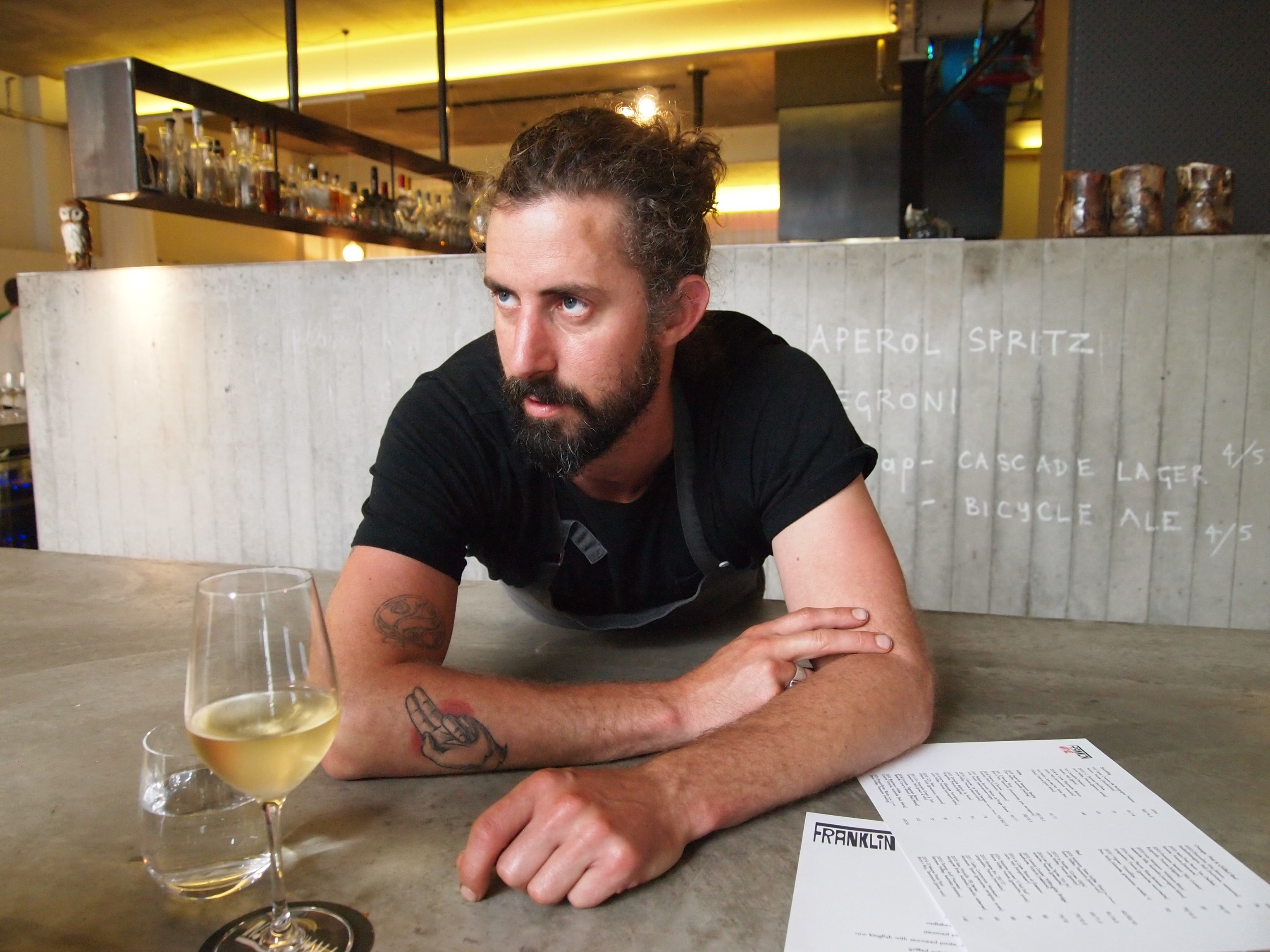 Creating haute locavore cuisine in Tassie has its challenges. The island has a robust fishing fleet—but no fresh fish market. Nearly everything is sent to Sydney and Melbourne. “Tasmanian” wines are nearly all produced off island with Tasmanian grapes—though Moyle lives on one of the few vineyards that makes its own wine. Imported produce is sprayed against pests, which icks Moyle out. And the foraging is somewhat slim. A keen backpacker told me that he’s extra careful to bring enough food rations when he heads out on a Tasmanian trek. “There’s hardly any bush tucker at all; you’d starve out there.”
