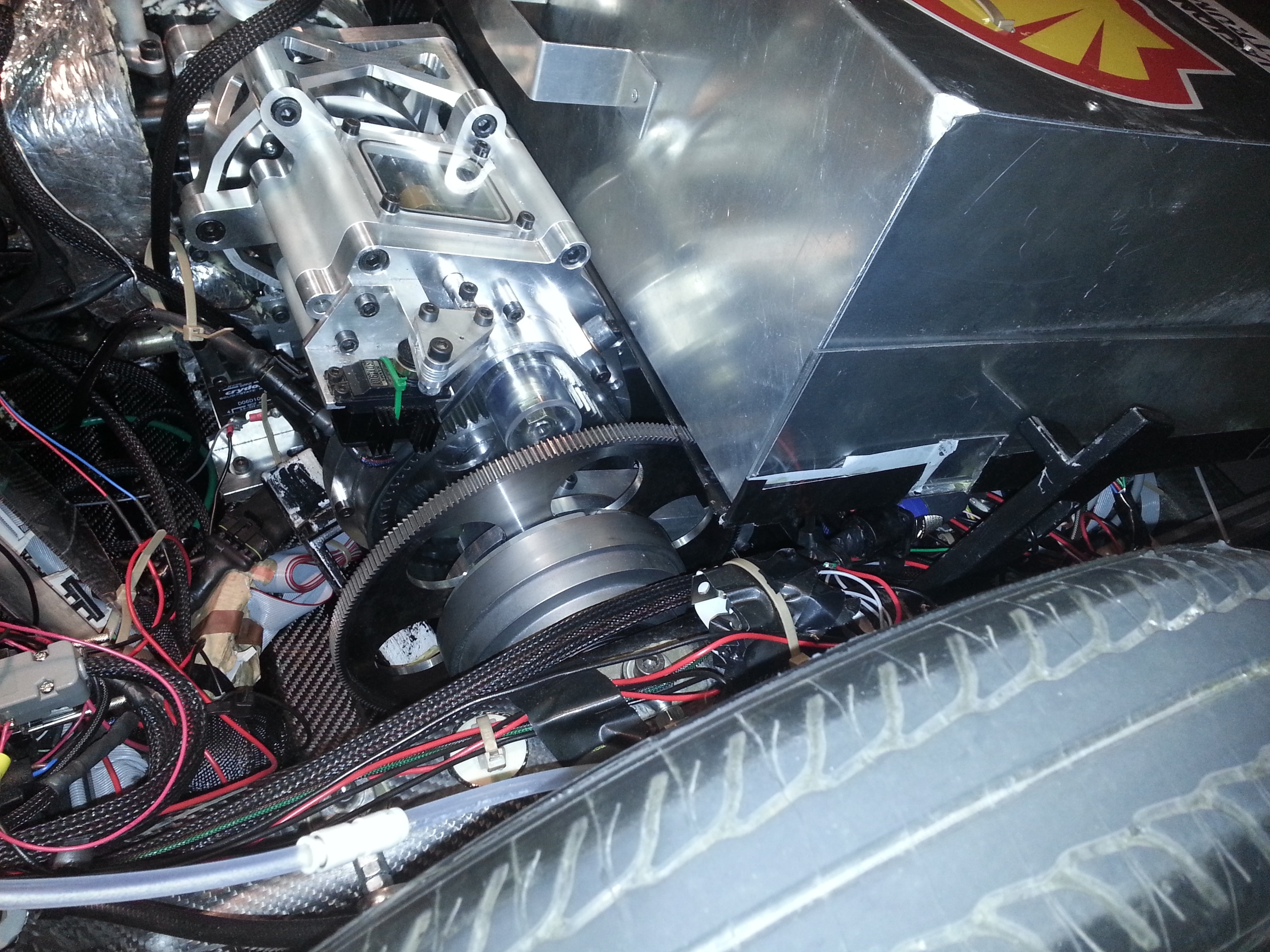 After a really hard night, with some very last minute tweaking, we installed a Kinetic Energy Recovery System on our car at Shell Eco-marathon Europe. Even though the KERS system was pretty untested, we still chose to give it a chance, since we already had already set a new record of 612.3 kilometers on one liter of gasoline yesterday. (See also DTU Roadrunners 2013: Focusing On Evolution Instead of Revolution and At Eco-marathon Europe, Testing Commences)