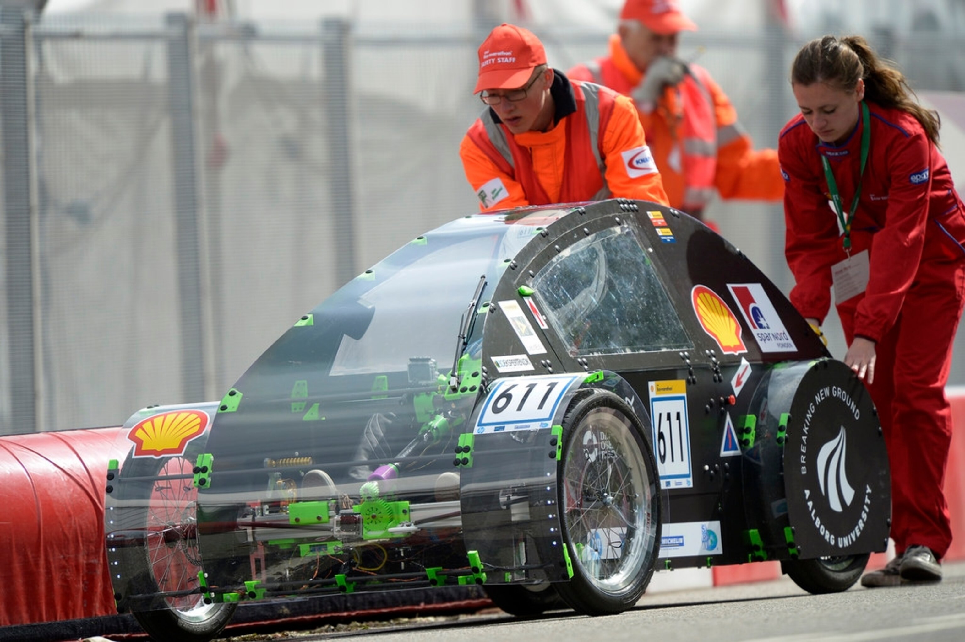 It looks like an oversized Lego construction, weighs a mere 81 kilograms (178 pounds) and is assembled from scratch in under two hours. Students of the Aalborg University in Denmark 3D-printed hundreds of parts holding together their car for the Shell Eco-marathon competition in Rotterdam. Is this the future of car manufacturing? (See related post: “It’s Not About Speed as 30th Eco-marathon Europe Begins.”)