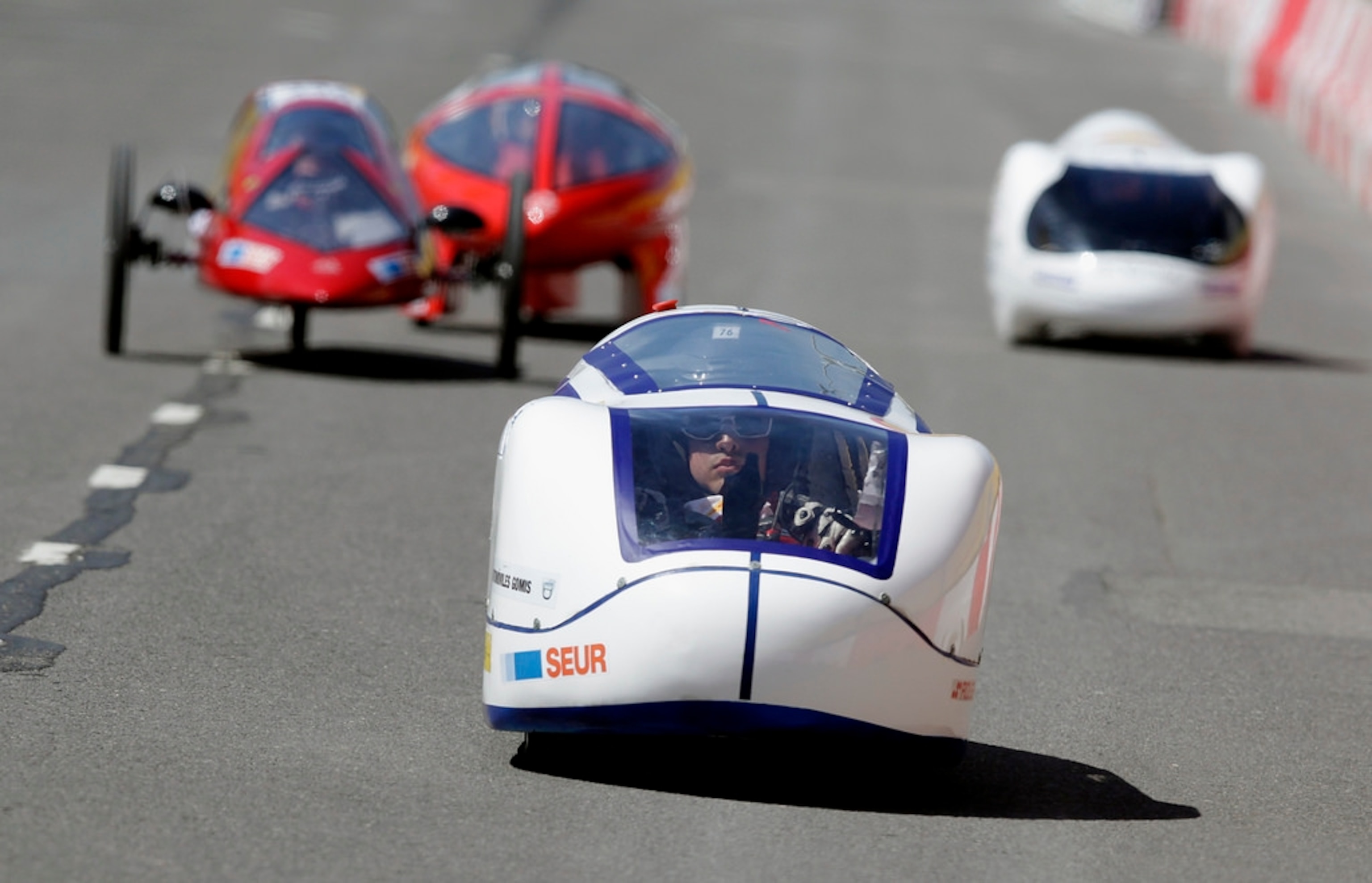 Slowly but surely, 198 student teams drive their self-built cars over a 1-mile (1.6 km) street circuit in Rotterdam, averaging 15.6 miles an hour (25 km/h). With speed out of the equation, the only way to win the competition is by efficient design, innovative technology, and a sophisticated driving strategy.