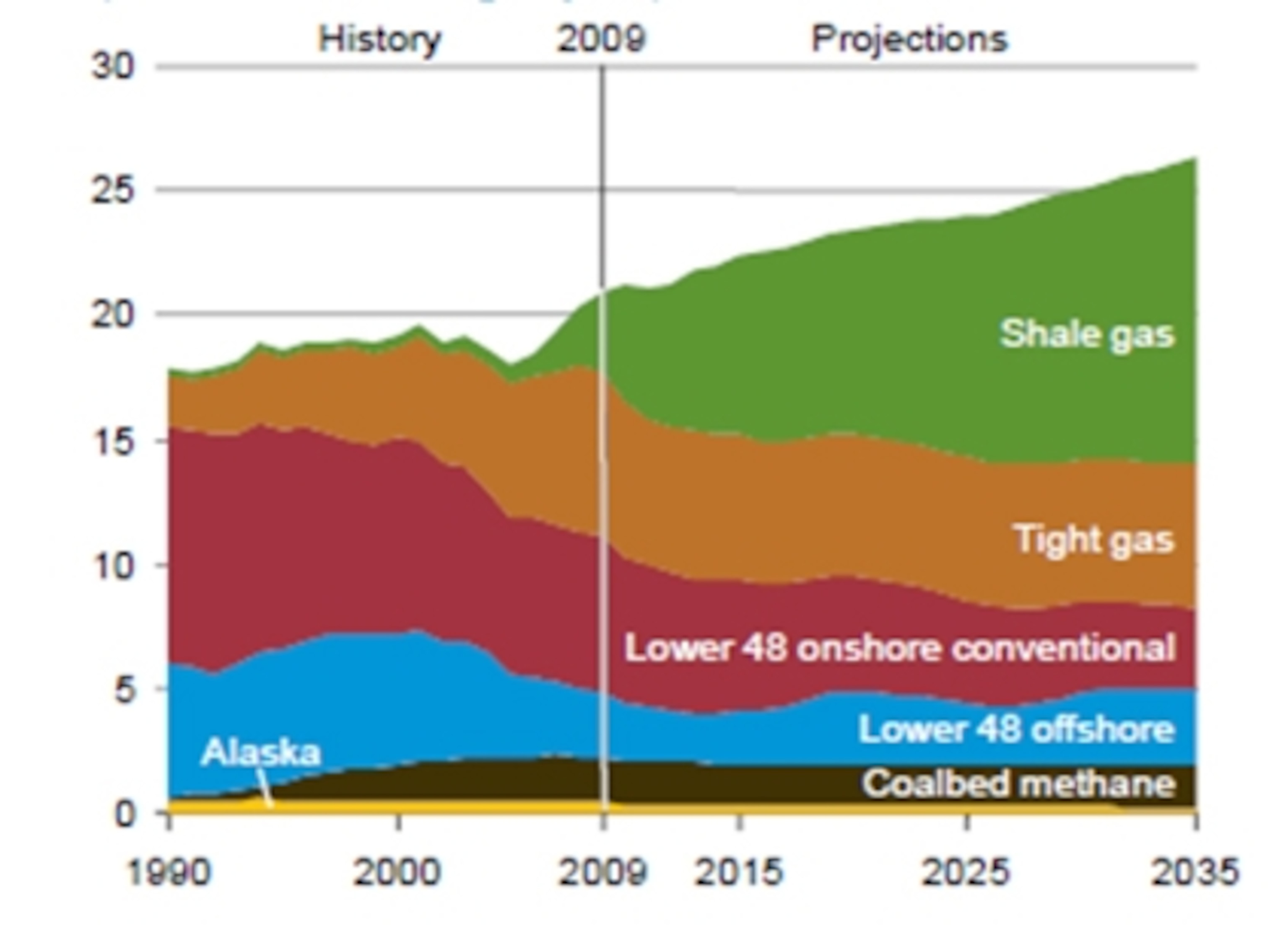 The discovery of massive deposits of shale gas has fundamentally changed the future energy supply equation for the US. The following chart from the Energy Information Agency (EIA) shows how shale gas will potentially play a more critical role in energy future. By 2035 shale gas will account for more than 46% of US natural gas production. This is a resource that we cannot afford to walk away from. Let’s be careful not to “Nuke” the future of natural gas and our country’s energy security based on often misleading or unproven arguments. We all need to take a responsible and informed approach to shale gas.