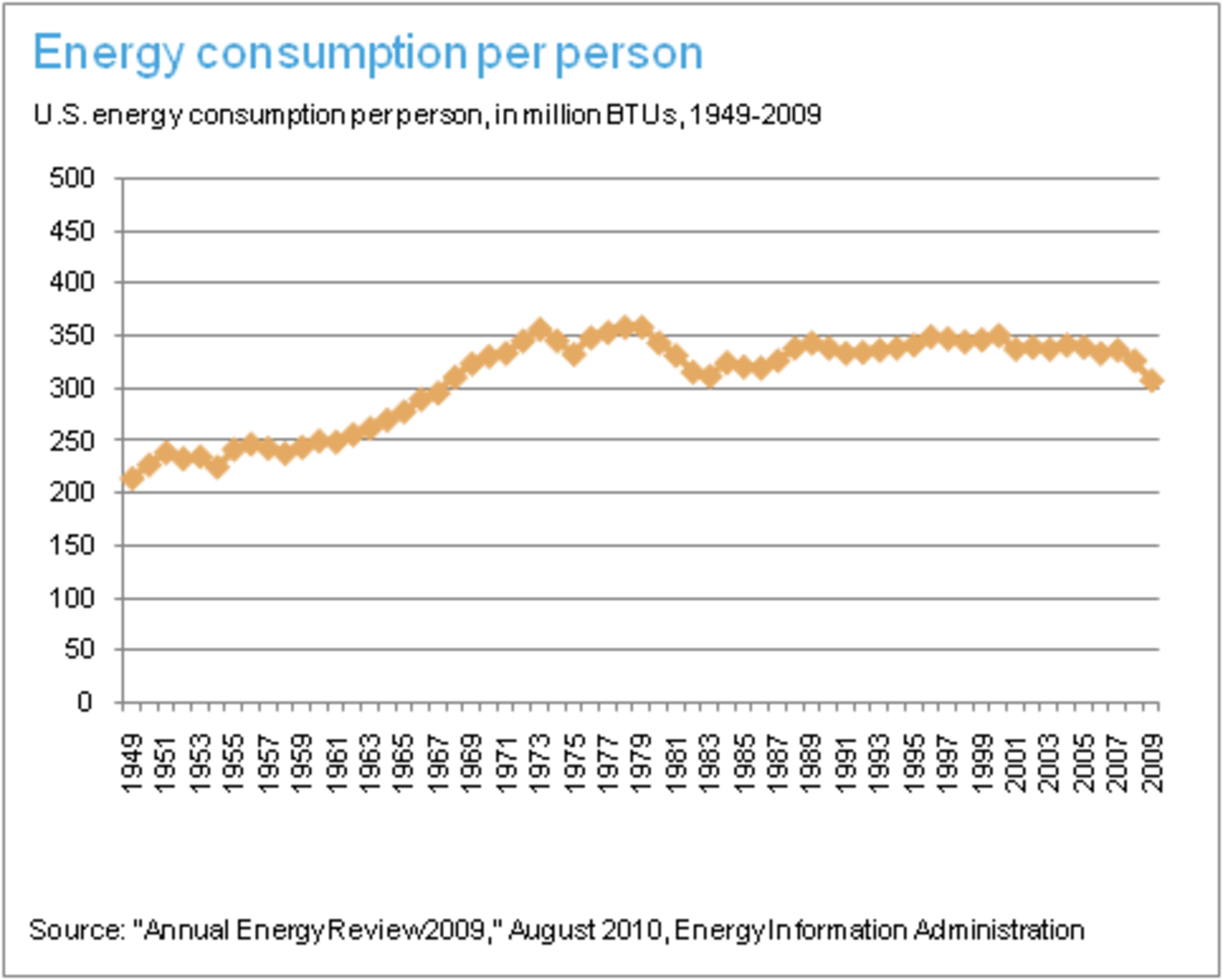 The problem is that we often underestimate how much energy efficiency it takes to get ahead. For example, energy consumption per person has stayed flat in the United States for 20 years, even as our homes got bigger, our gadgets got fancier, and we drove more miles annually. Why? Because our gadgets have been getting more efficient and more numerous, cancelling each other out. Yes, we’re more energy efficient, but we’re still importing oil and cranking out the greenhouse emissions. What’s more, we’re not making any serious plans for the future when the oil and other fossil fuels we depend will likely be much more expensive. In the United States, our gains in efficiency have kept us running in place. And China and India are expanding at a rate where they’re outstripping the fact that they’re starting off with newer, greener gadgets.