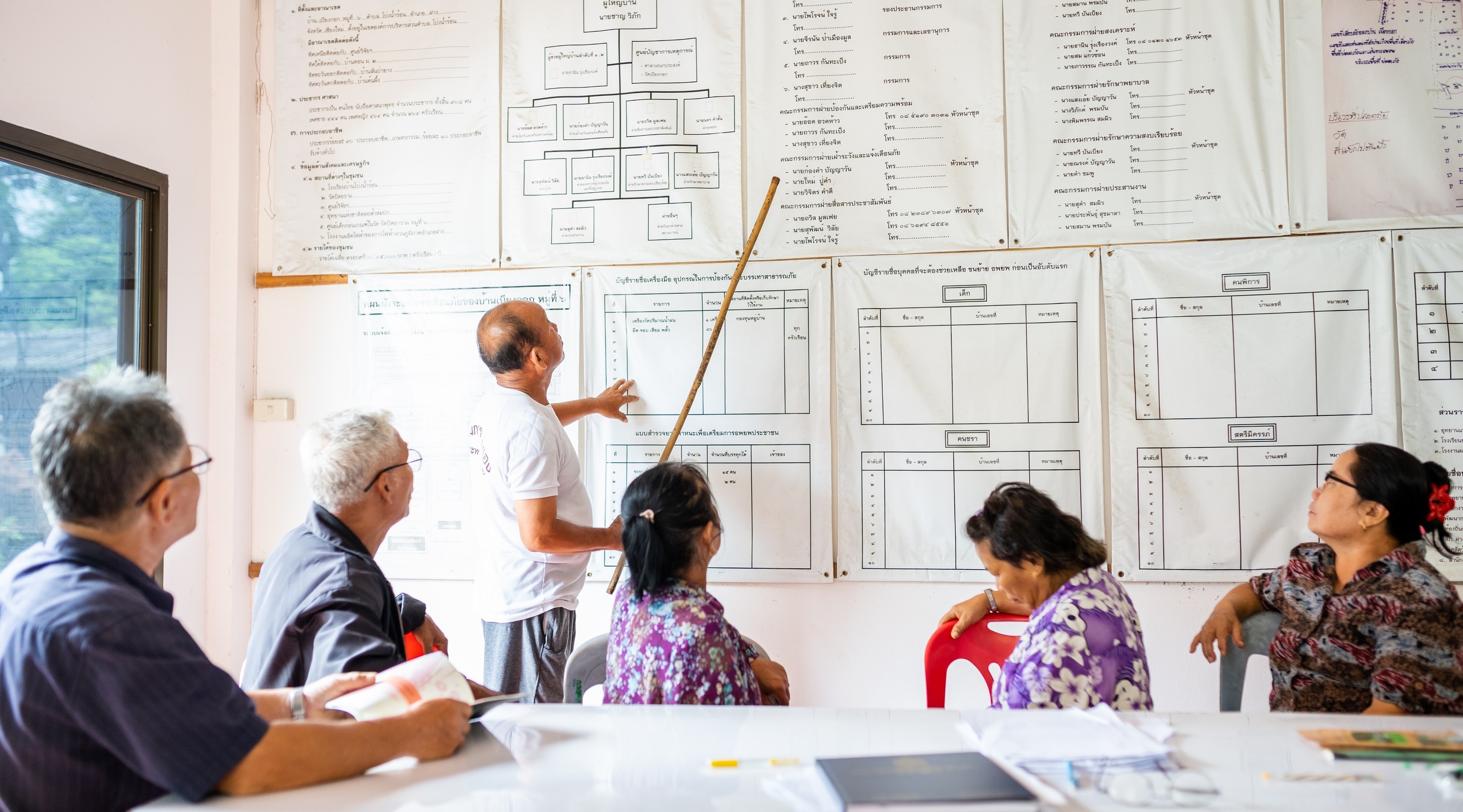 Every year without fail, he helps to organize a community-wide disaster preparedness training. Villagers are taught to identify the warning signs of disasters and how to execute the evacuation plan. Absolutely no one is exempt from the sessions, Boonpeng says: “The elderly should be educated. Children, monks… everyone.” With the entire community aware of the steps they need to take in the event of an emergency, he can make sure that no one is left behind, including special procedures for the bedridden, the ill, and pregnant women.