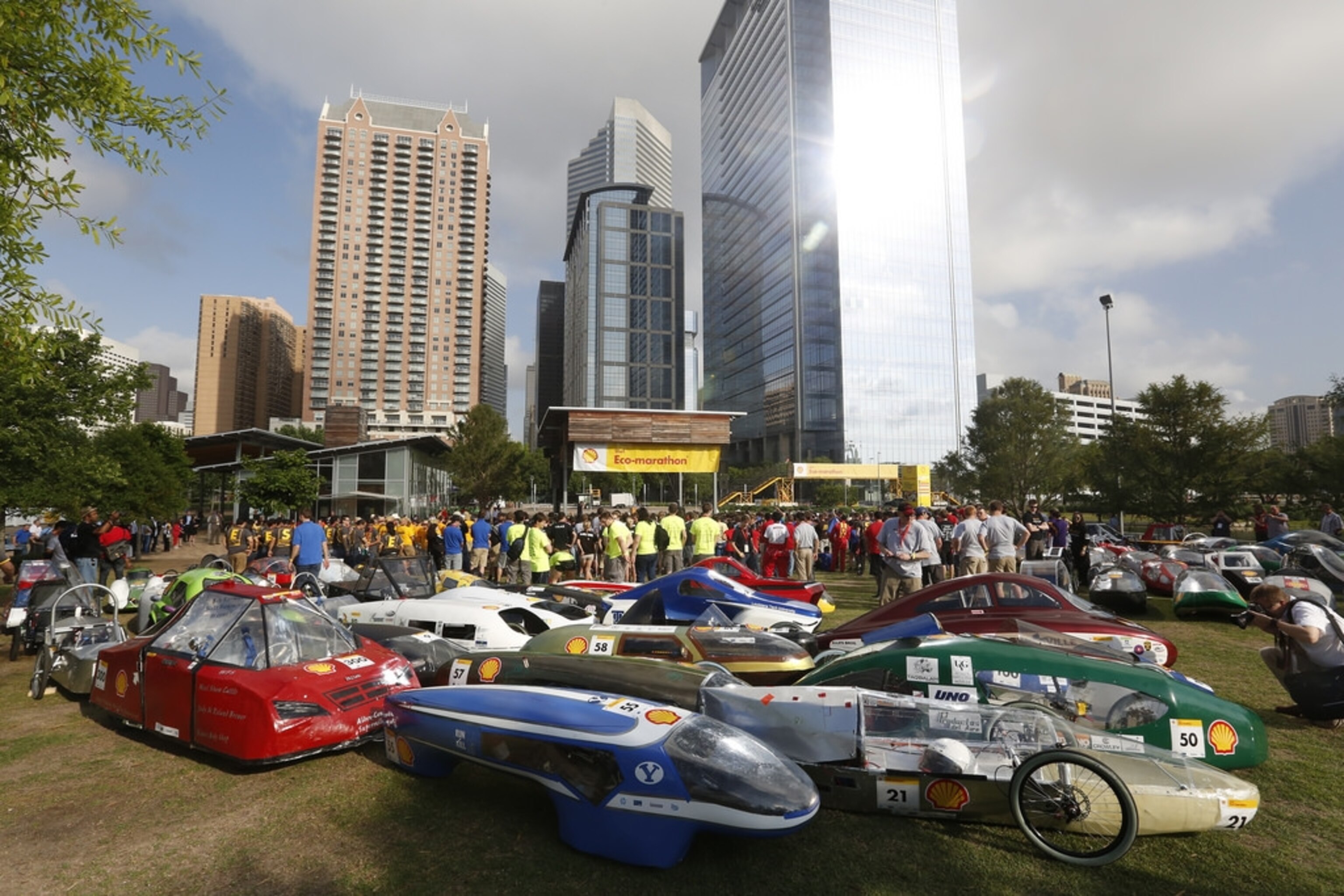 Shell Vice President of External Affairs Niel Golightly congratulated the students for their innovation, which could be seen in fuel-efficient vehicles of all shapes and sizes lining of the grass of Discovery Green.