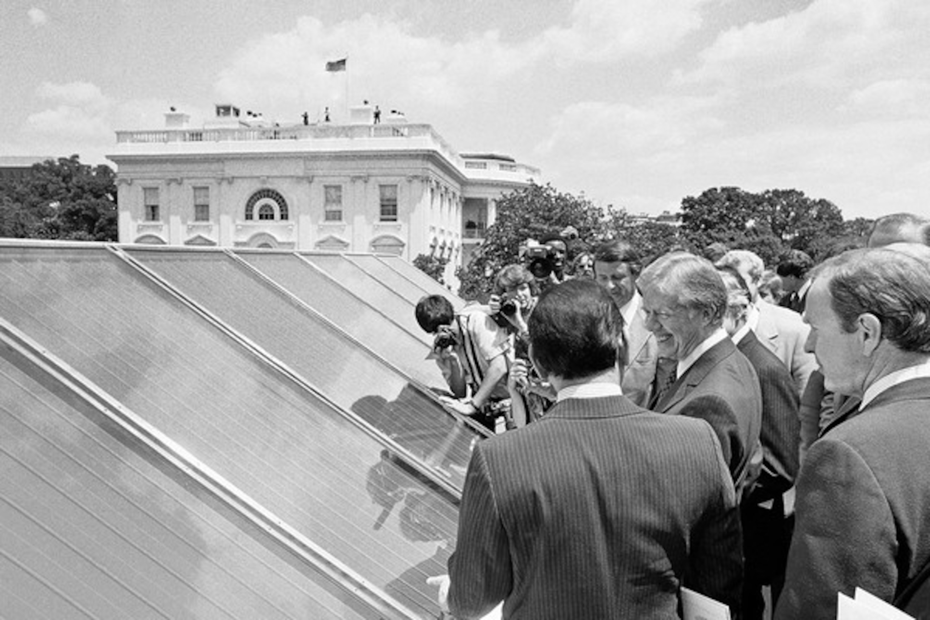 During the 1970s energy crisis, President Jimmy Carter had solar panels installed on the White House roof. The panels were removed in 1986 by President Ronald Reagan.