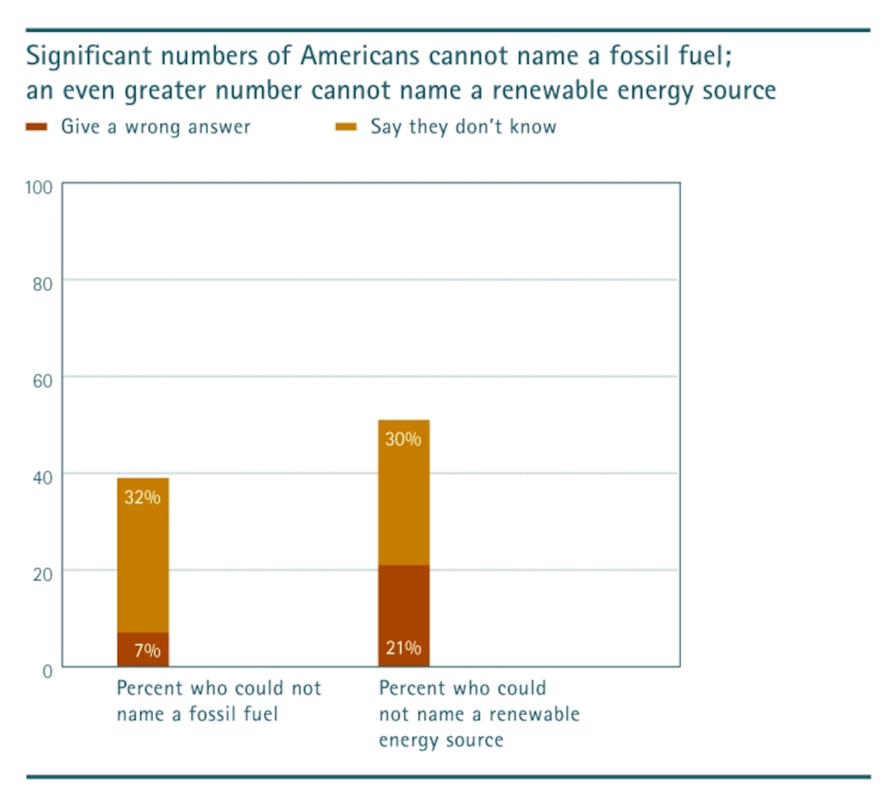 One reason may be that the public lacks some basic knowledge about energy. A Public Agenda survey in 2009 found nearly 4 in 10 Americans (39 percent) couldn’t name a fossil fuel. Nearly half couldn’t name a renewable energy source. More than half of the public (56 percent) says incorrectly that nuclear energy contributes to global warming. About one-third of the public (31 percent) thought solar energy contributes to global warming. While the survey is a few years old, we’re skeptical that public knowledge has improved all that much.