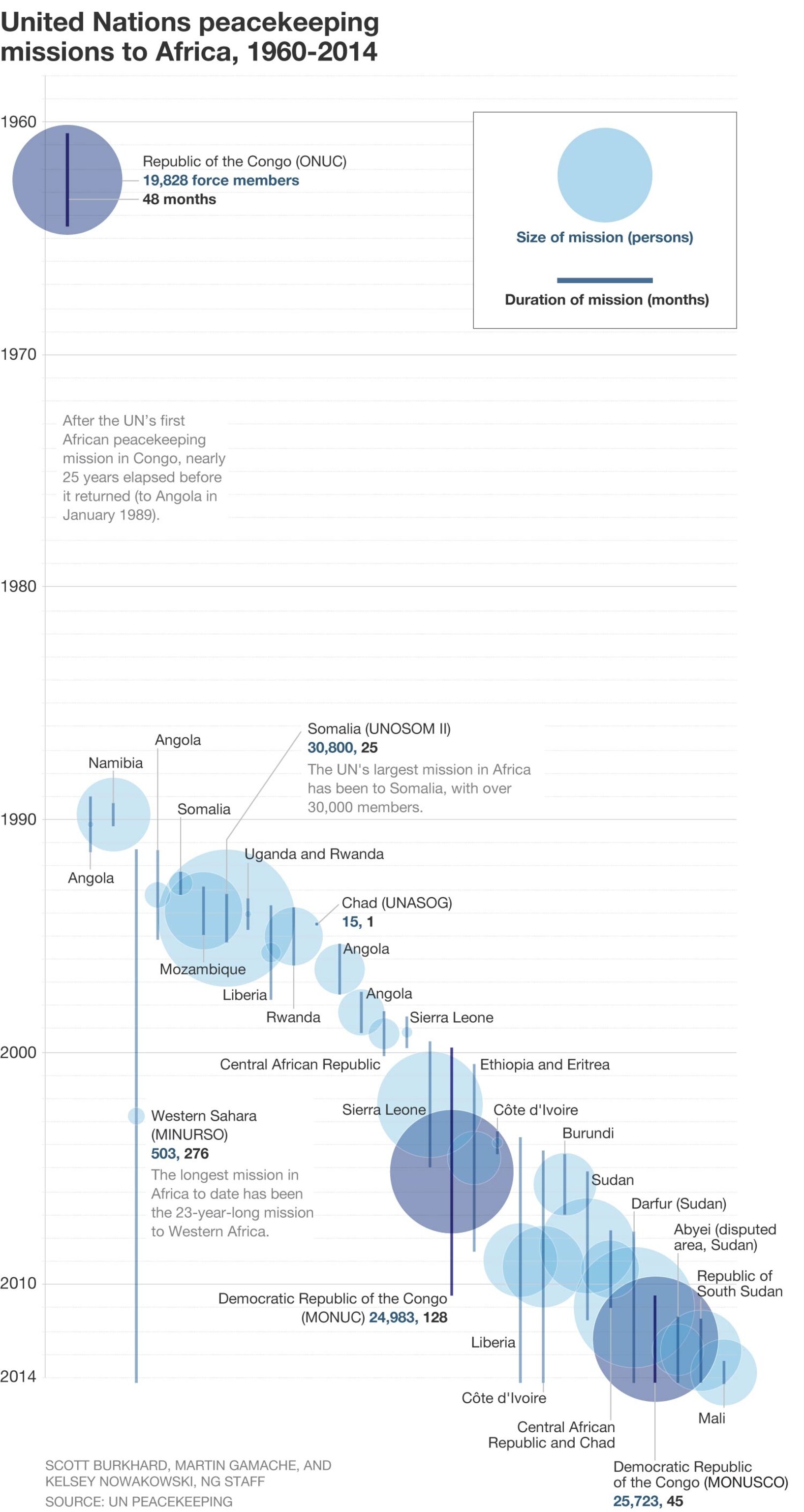 During the Cold War, peacekeepers went to Lebanon, Cyprus, Afghanistan, the Sinai, and elsewhere, but avoided Africa. Congo, then under Mobutu's repressive thumb, was relatively peaceful, even if the rest of Africa was not. In 1992, acknowledging the continent was a mire of despotism and civil war, Secretary-General Boutros Boutros-Ghali introduced "robust peacekeeping." The UN had to become an enforcer of universal humanitarian values, he insisted, an advocate of victims rather than states. "A major intellectual requirement of our time is to rethink the question of sovereignty," Boutros-Ghali said. By the mid-90s, the number of peacekeeping operations had tripled, and most of the interventions went into internal, not international, conflicts. Boutros-Ghali's successor, Kofi Annan, the UN's first sub-Saharan African secretary-general, would carry this philosophy on with his doctrine of the "responsibility to protect." But when American troops were killed while supporting the hugely ambitious mission in Somalia, in 1993, Washington blamed the UN, criticizing it for poor planning.