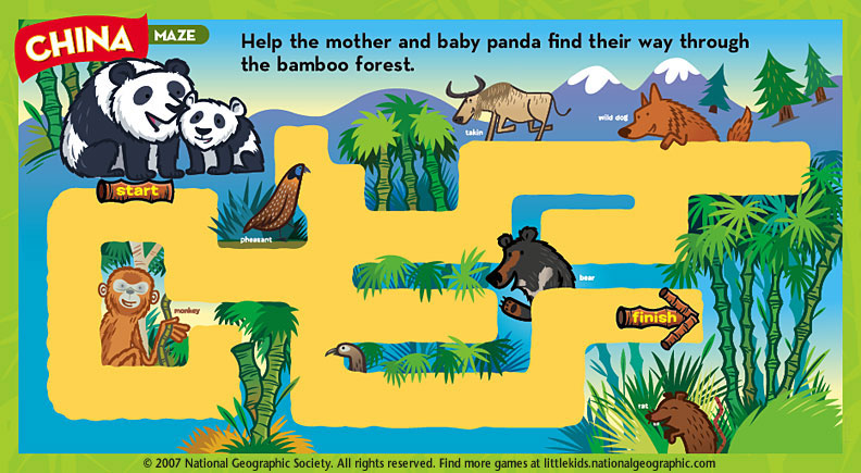 Mazes provide a fun way to practice fine motor skills that your child will need when learning to write. As your child finds the correct path in this maze, ask your child to describe the scene from the pandas' point of view to encourage storytelling.
