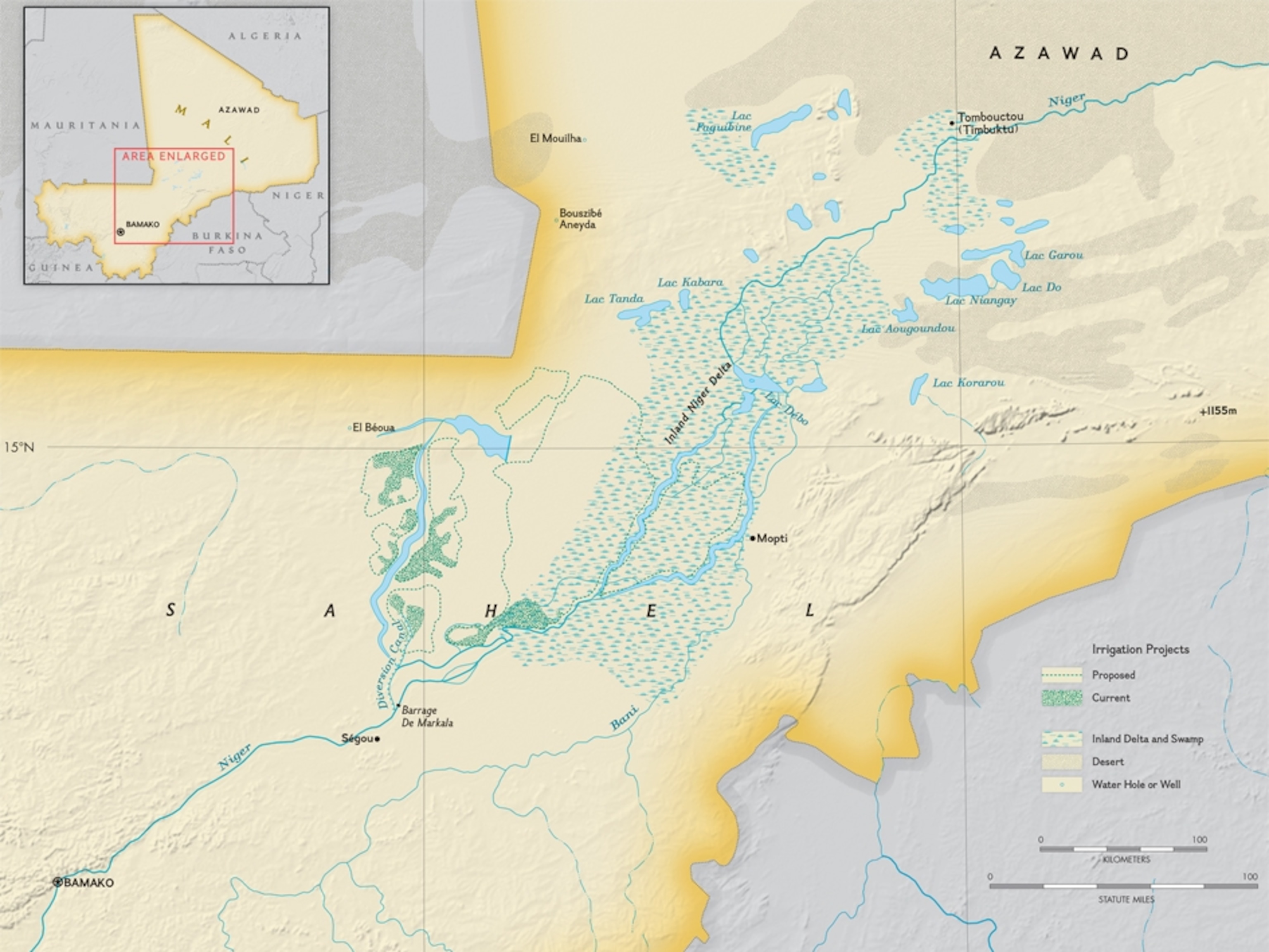 Back on dry land, I found the source of the mayor's ire just a few miles away, where engineers were constructing concrete barrages to tame the Niger River's flow and digging canals to divert its water just before it enters the wetland.