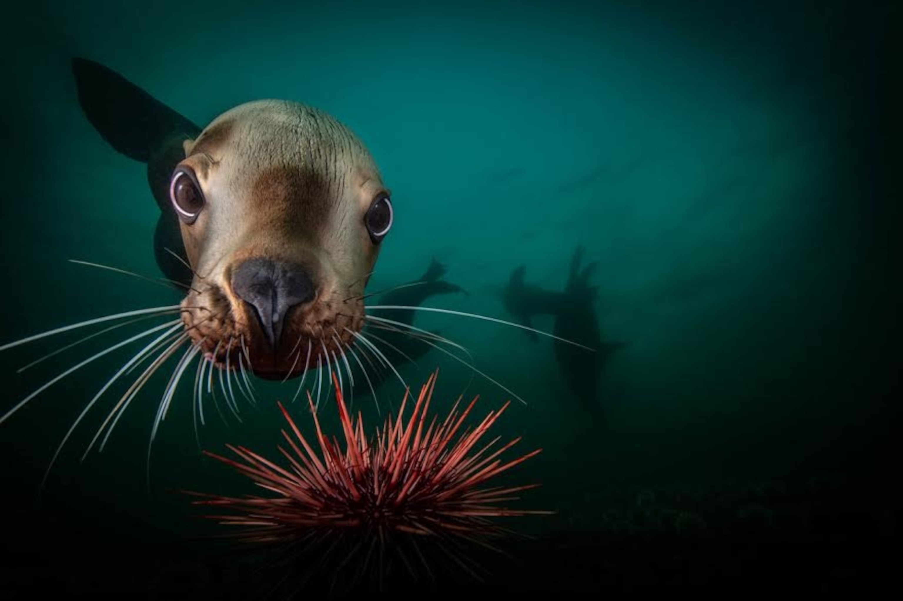 Curiosity: A young Steller sea lion was busy investigating the long quills of a sea urchin when it suddenly peered into Cristina Mittermeier’s camera. “His whiskers bristled with bold curiosity, and the creases on his little face furrowed as he leaned in to get a better look at me. I kept as still as I could, delighted by the close encounter,” Mittermeier tells us. Steller sea lions flock to the coast of British Columbia in the spring to wait for the herring’s seasonal return. The first arrivals are often juvenile males who seek out every opportunity to play and stir up mischief. They spend their days tearing gleefully after each other through the icy waters and are known to engage with unsuspecting divers for fun.
