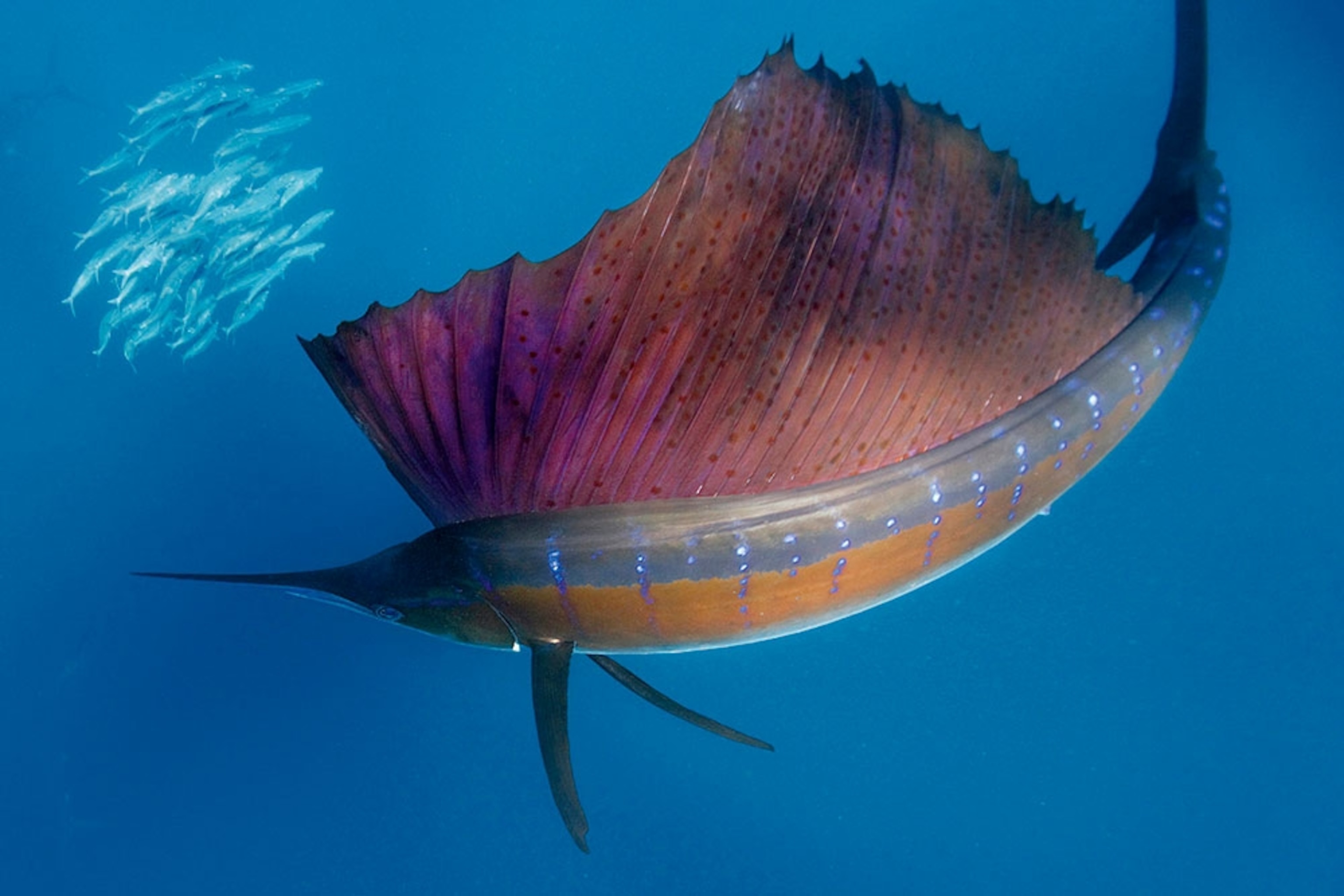 Fast work: It can take many days to get an image like this of the swift-moving sailfish. Photographer Paul Nicklen says he was able to capture this photo in waters off Mexico “with only a few good hours of lucky shooting.” The sailfish can reach speeds of 68 miles an hour.