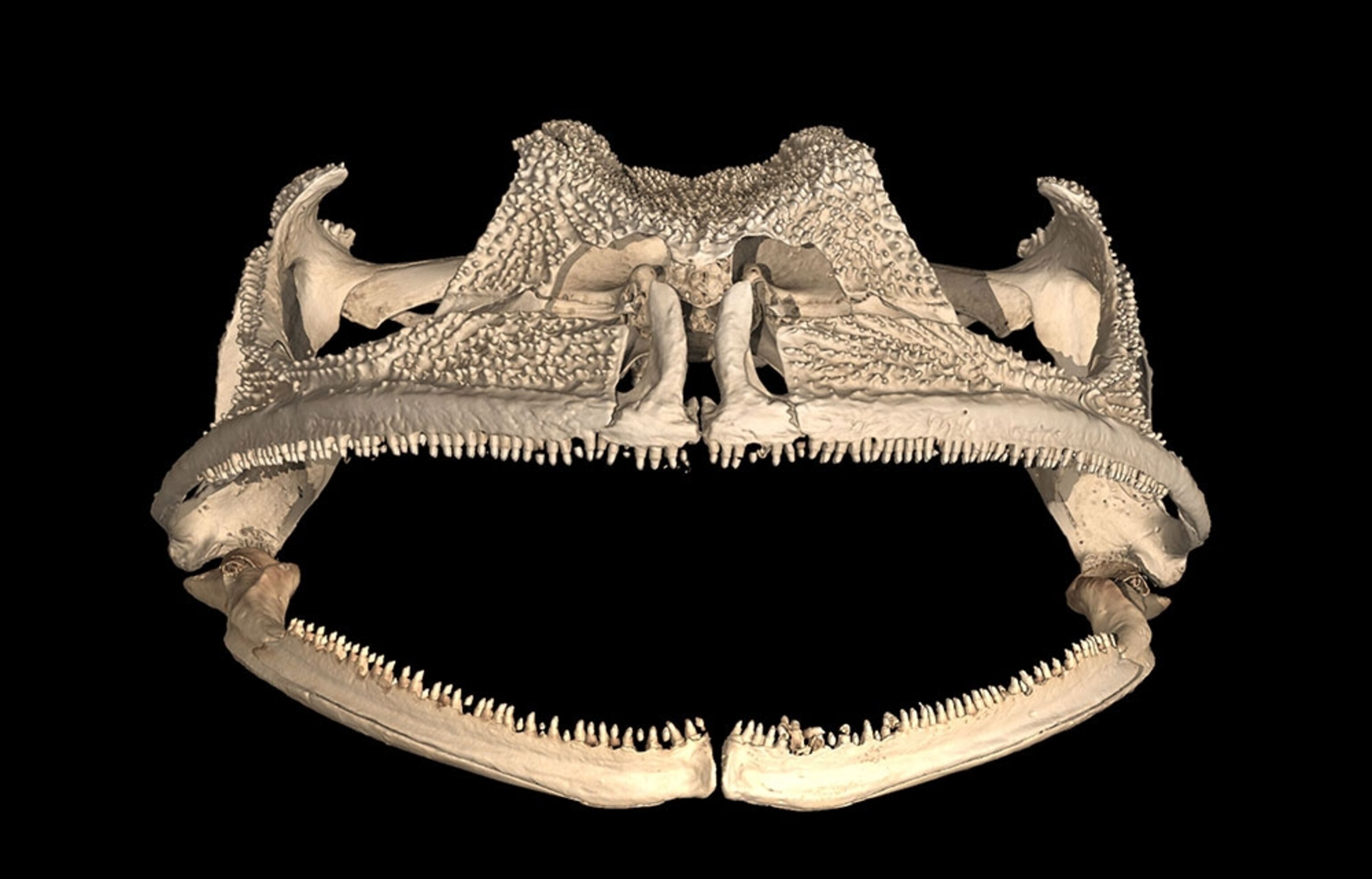 Frogs have teeth? Sure they do. Most have a small number of them on their upper jaws, but Guenther’s marsupial frog, an interesting-looking amphibian from the Andes, has a full set. Florida herpetologist Daniel Paluh used a micro-CT scanner to peer into the skulls of the frog species, known as Gastrotheca guentheri, preserved for decades in alcohol. The results are the first clear look at the animal’s chompers (pictured above).