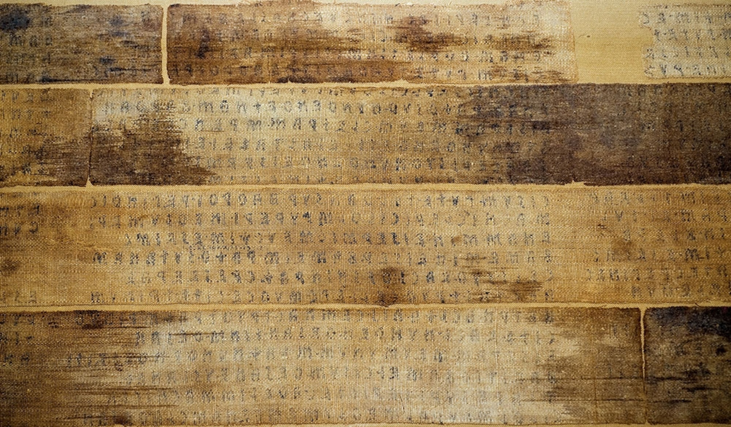 A mummy mystery: A long-dead ancient Egyptian woman was wrapped in linen with text in a strange language. It took decades before researchers determined it was Etruscan, from a pre-Roman people. Finding 1,300 words on the mummy’s wrapping, researchers learned more from the long-dead language, of which one word, adapted by the Romans, is the root of the words “person” and “persona,” Nat Geo HISTORY magazine reports. (Pictured above, Etruscan letters from a restored linen book, once torn into stripes to cover an Egyptian mummy.)