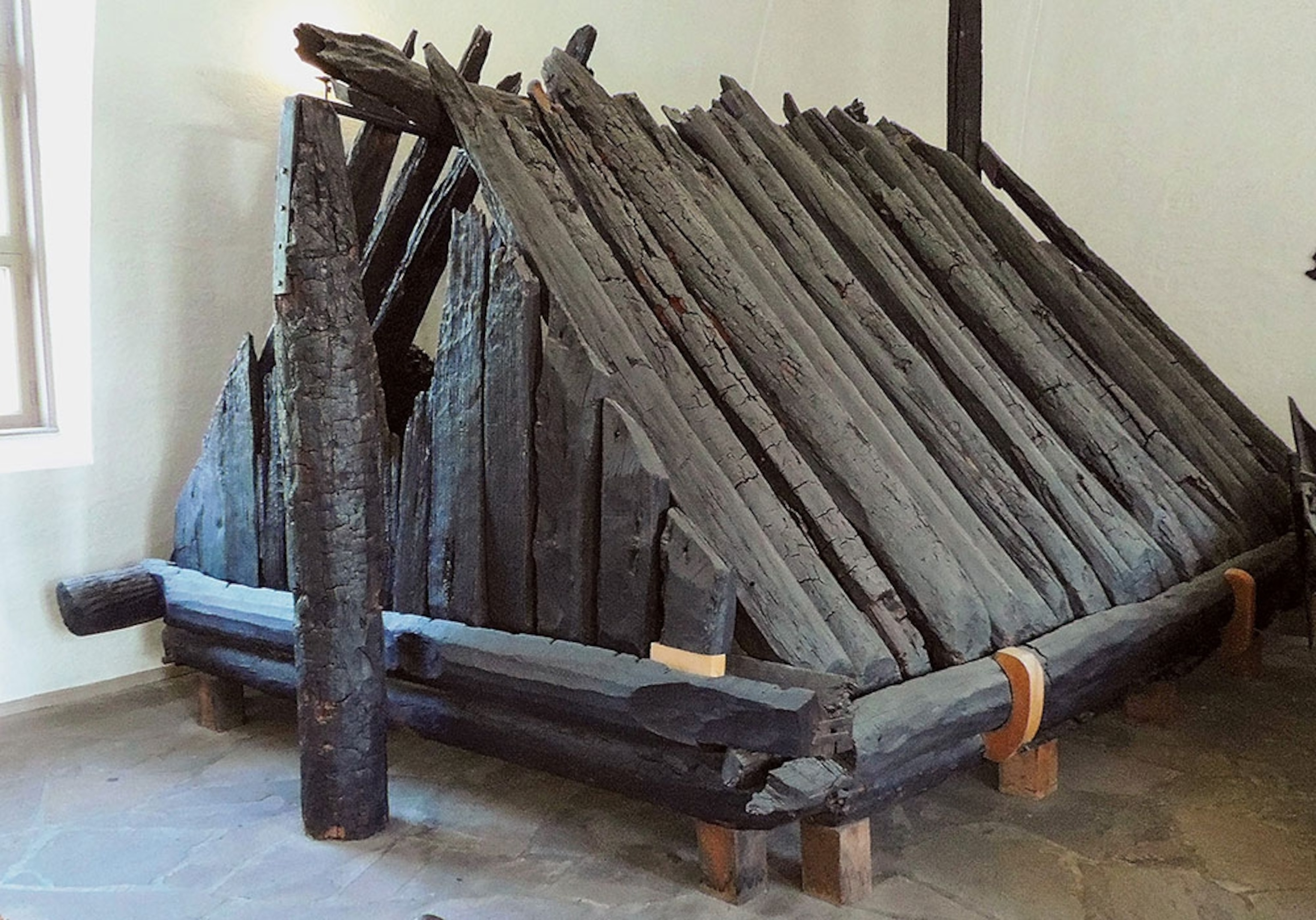 Pictured above, Viking mourners constructed a tent-like chamber on the burial ship for the two women, who died around the year 834.