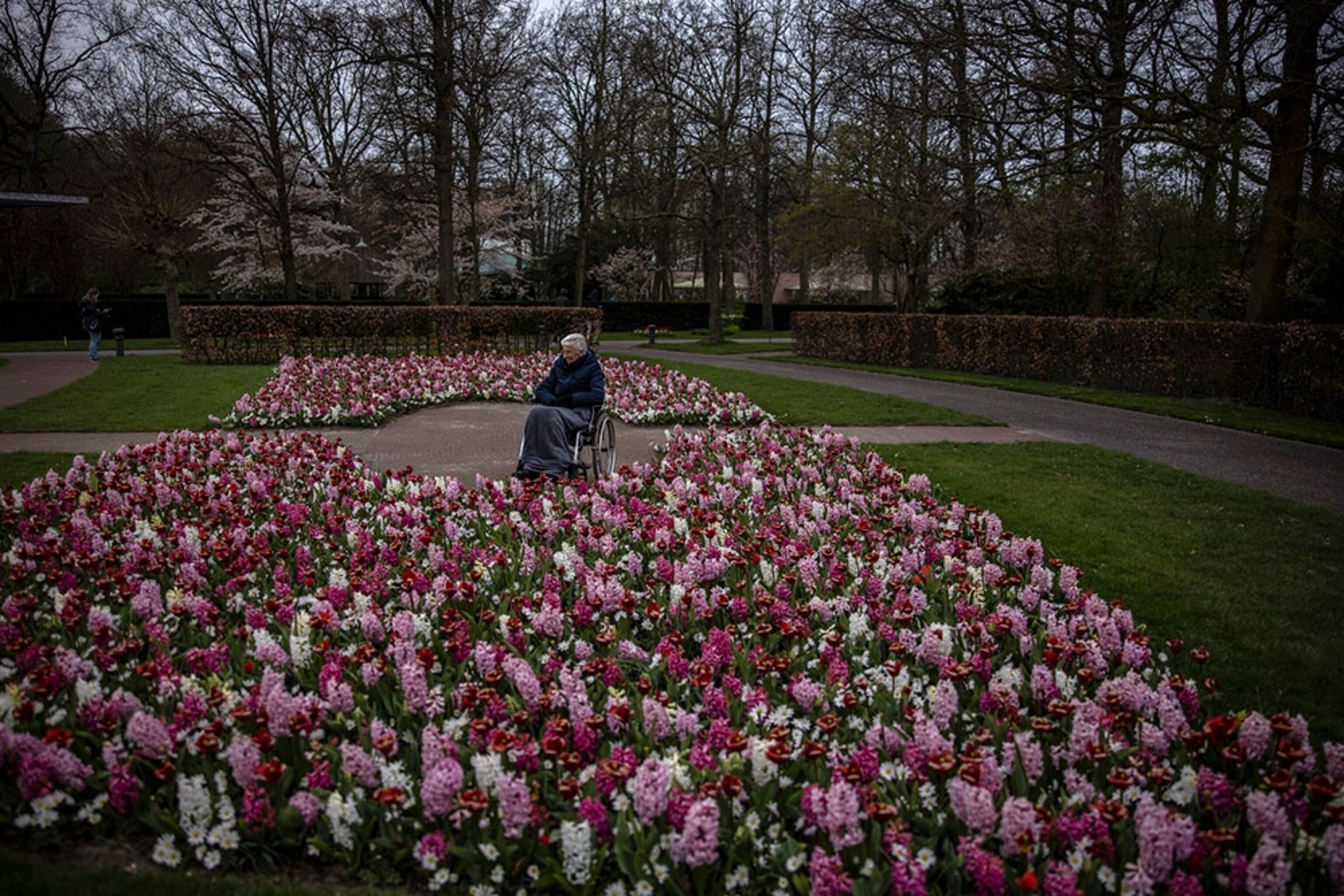 Photo editor Gail Fletcher produced this story, something of a side project from Muheisen, a two-time Pulitzer Prize-winning photographer and founder of the Dutch nonprofit Everyday Refugees Foundation, which helps people displaced internally by war, natural disasters, discrimination, and poverty. (Above, he photographed Mevouw Both, 90, while she enjoyed her time at the Keukenhof garden.)