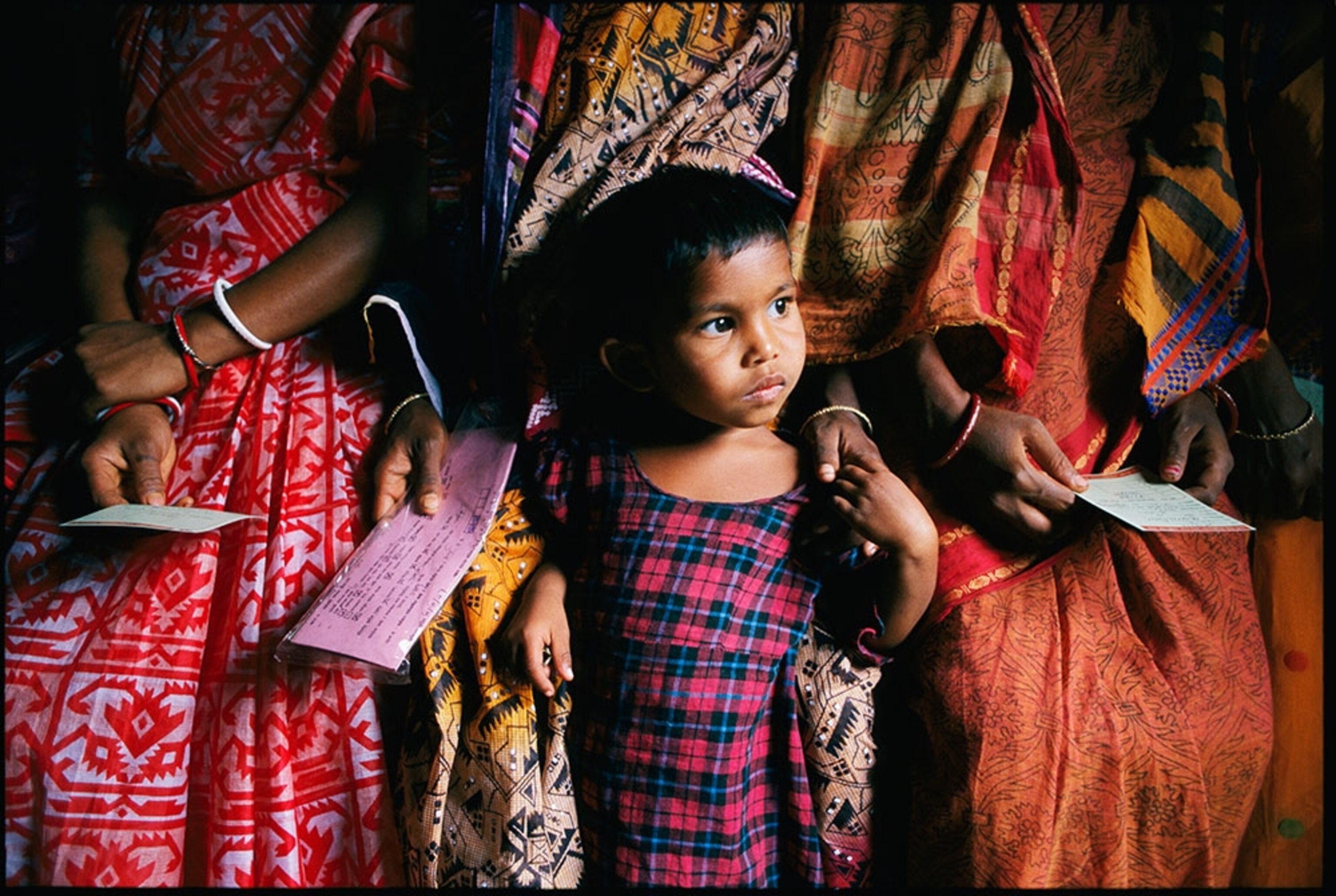 What’s up, mom? At a health clinic in Bangladesh, a young girl nestles into her pregnant mother's sari while her mom gets a checkup and advice on the pregnancy. This photo, which recently appeared in our Photo of the Day archival feature, was the cover image of the October 1998 issue.